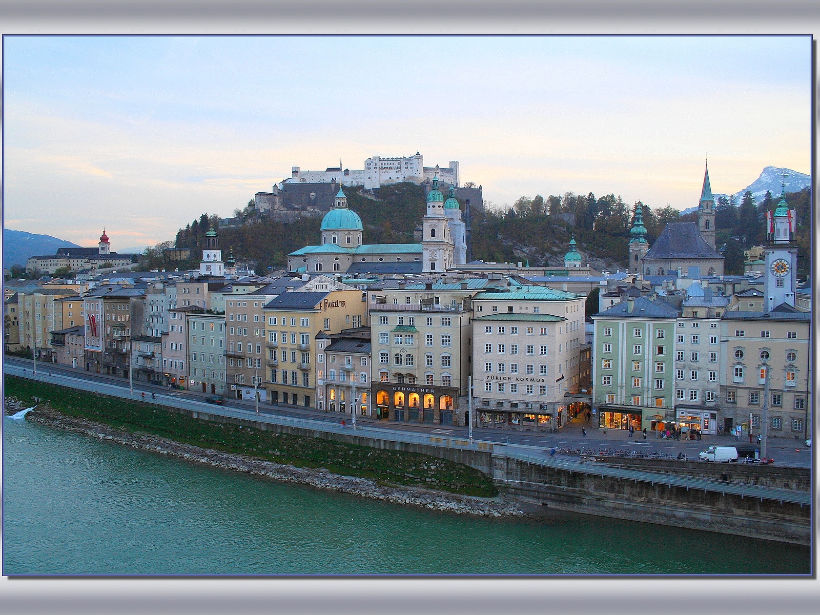 ....ok! you have had anough peace around here! I'm back! ...and now you can see where I have been visiting - the beautiful town of Salzburg in Austria (I thought it was a city but was corrected) - home of Mozart and film location of the Sound of Music. I wonder why everyone in Salzburg is wearing earplugs this week! lol! My hotel was right amongst the old churches, and museums you can see on this photograph ...lots more to post, so be prepared to be bored by my enthusiasm for this beautiful location. ;)