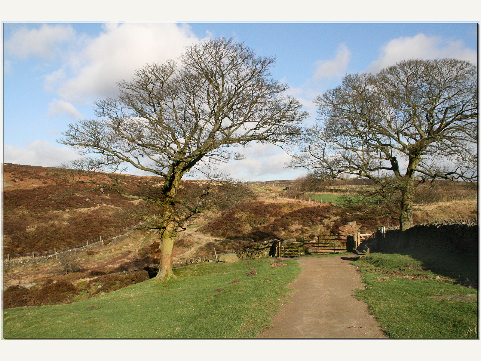 .....follow this path, cross the road and walk up the path on the opposite side, keep walking to the left and within minutes you will be on Curbar Edge looking over Derbyshire ....no pubs en route! ;)