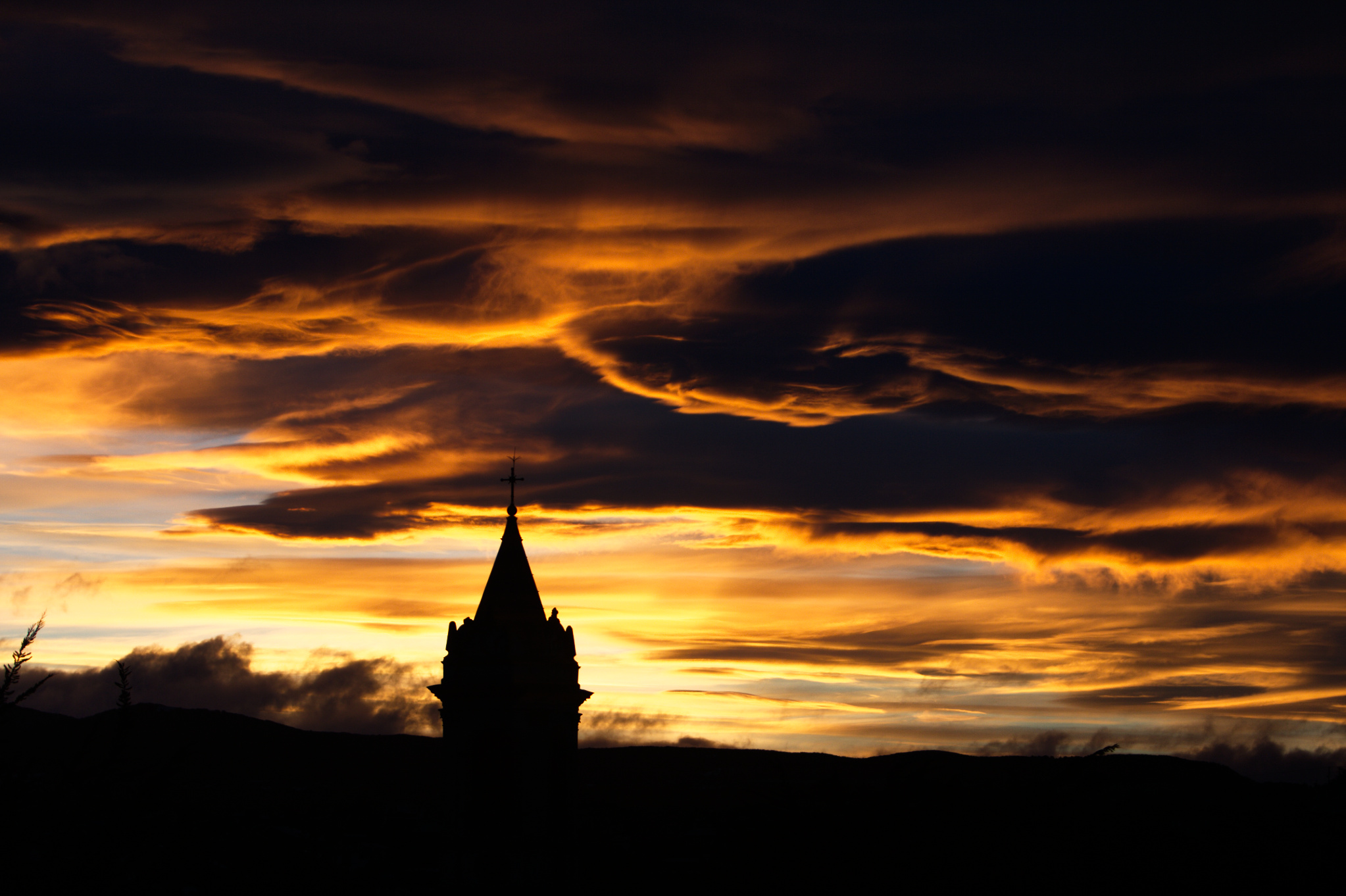 This was the view out of my friends hotel room last night. The Silhouette is of the clock tower in the town center of Punta Arenas, Chile.