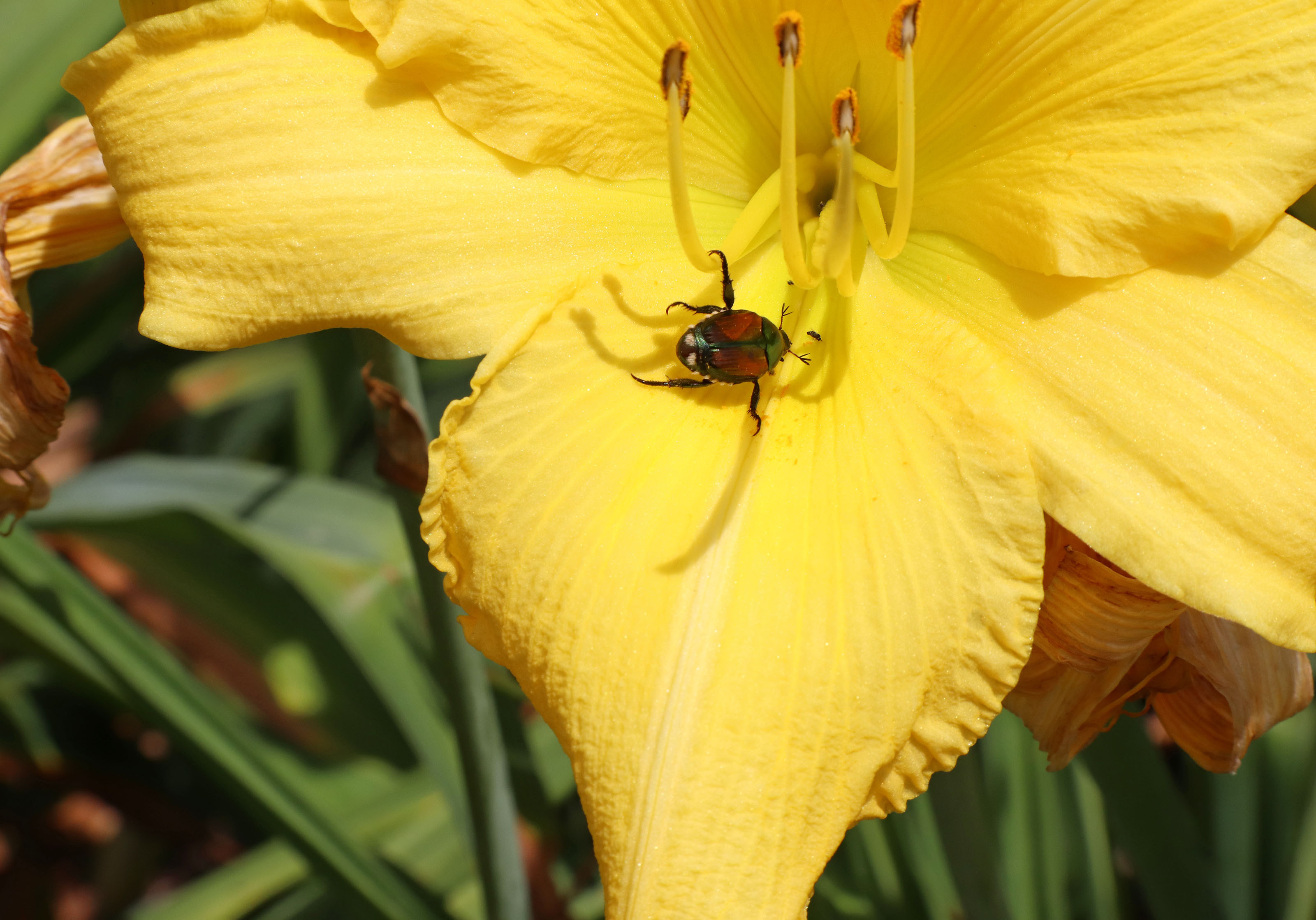 The beetle on the yellow lily really enhances its beauty with coordinated colors - Kindly Enjoy - Wishing everyone at Caedes a Great 1st Weekend in August 2021!!!!!!!!!