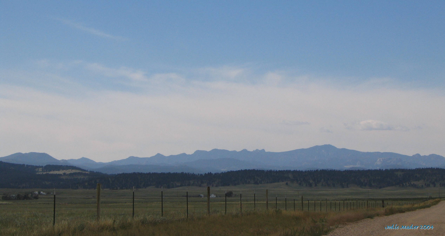 This a view of the Black Hills of South Dakota by the way of Hermosa's Country Roads. If you look close at the mountain a little to the left, in the middle (from top to bottom) of the mountain is Mt. Rushmore.