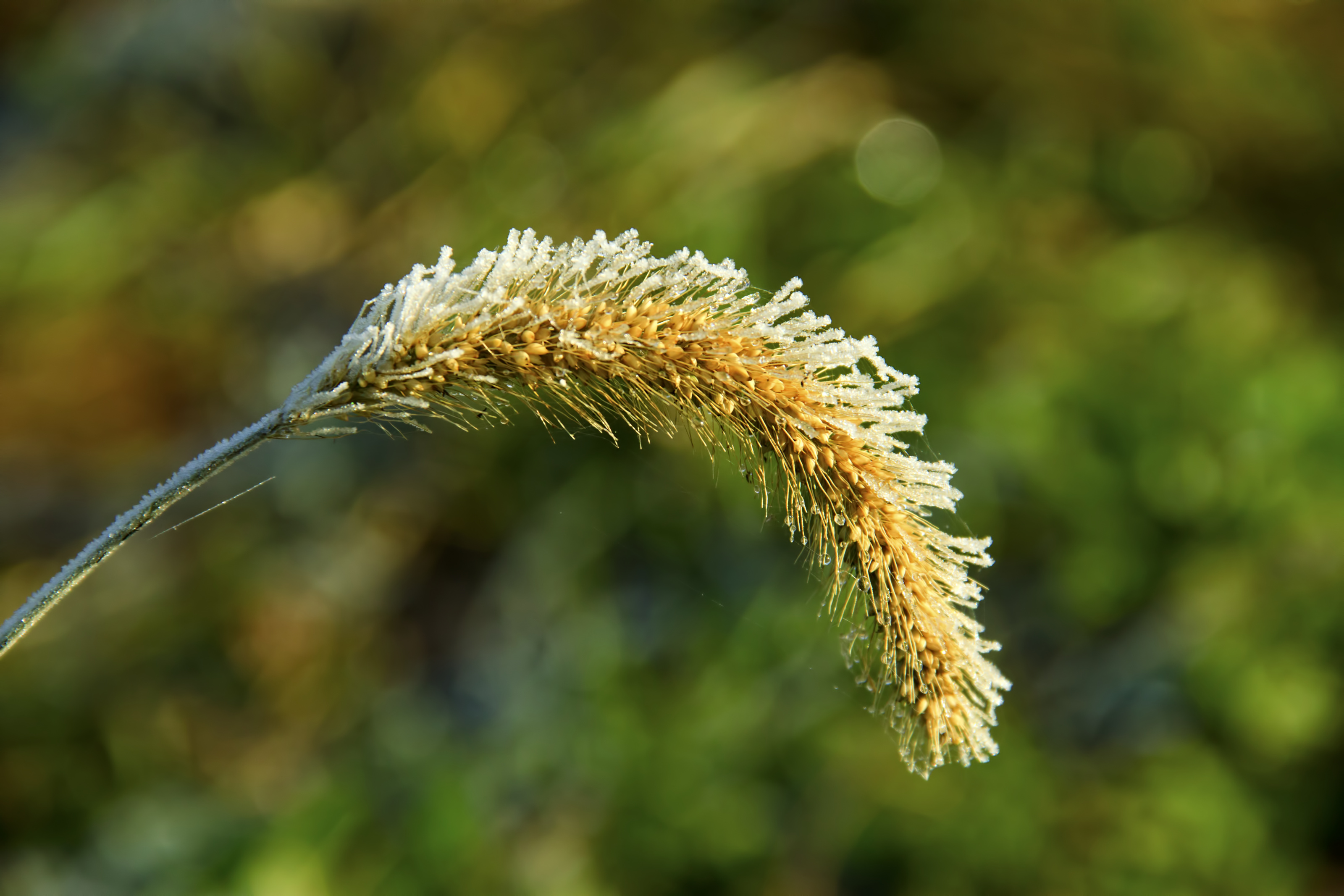 Cromwell, Connecticut, USA. With temperatures of -2�C this morning, we had our first frost. Sunshine, fog on the valley, and a cancelled meeting left me with the urge to take the camera for a walk along the river. This frost-capped grass tuft was found along the path. A few minutes later, frost was melted. Enjoy! Critique welcomed.