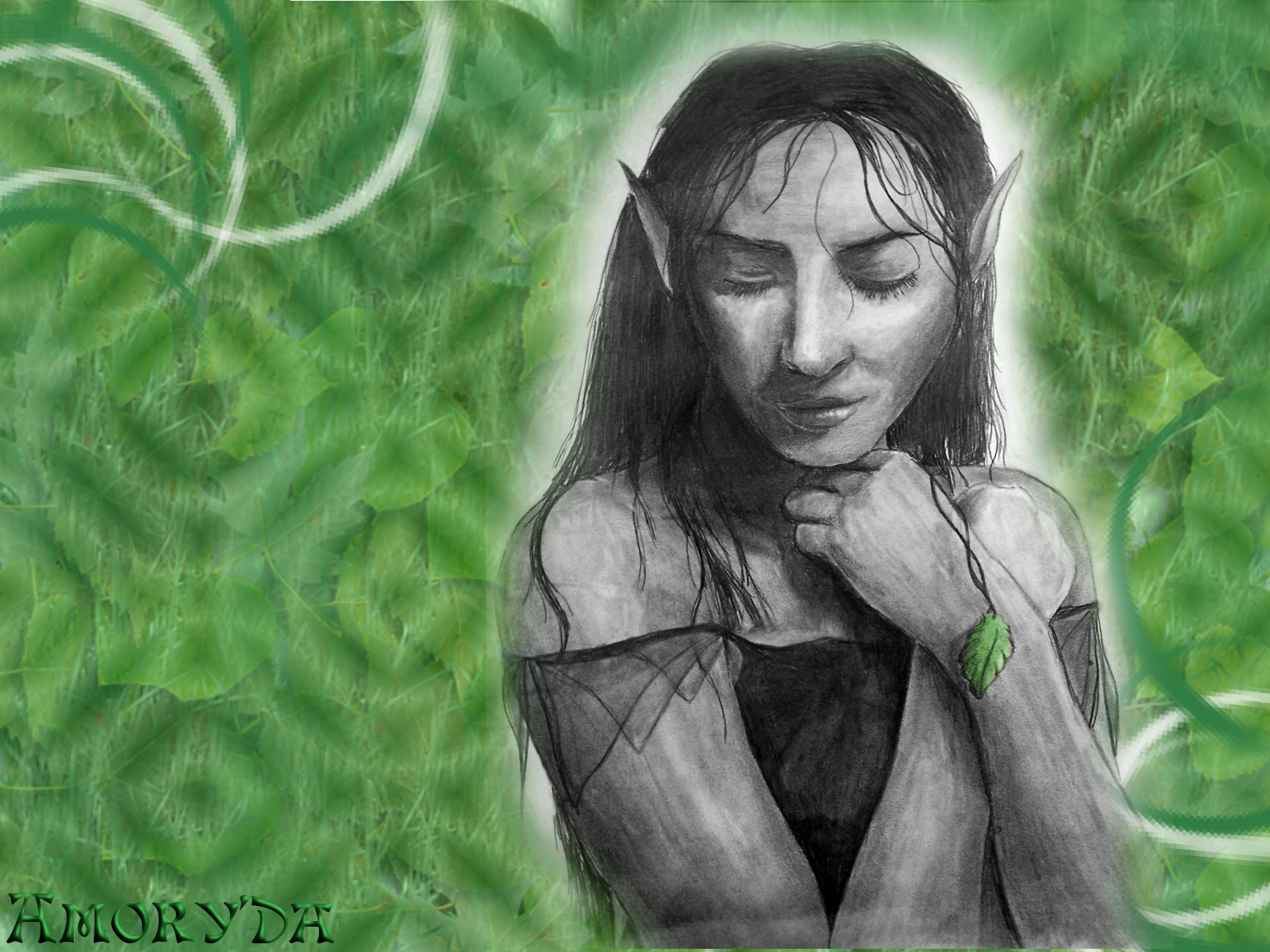 I give you, Amory'da, an elf. She was created out of graphite pencil and the leaf was coloured in paintshop. The background I created in paintshop. Enjoy. Comments and criticisms are welcome and much appreciated.