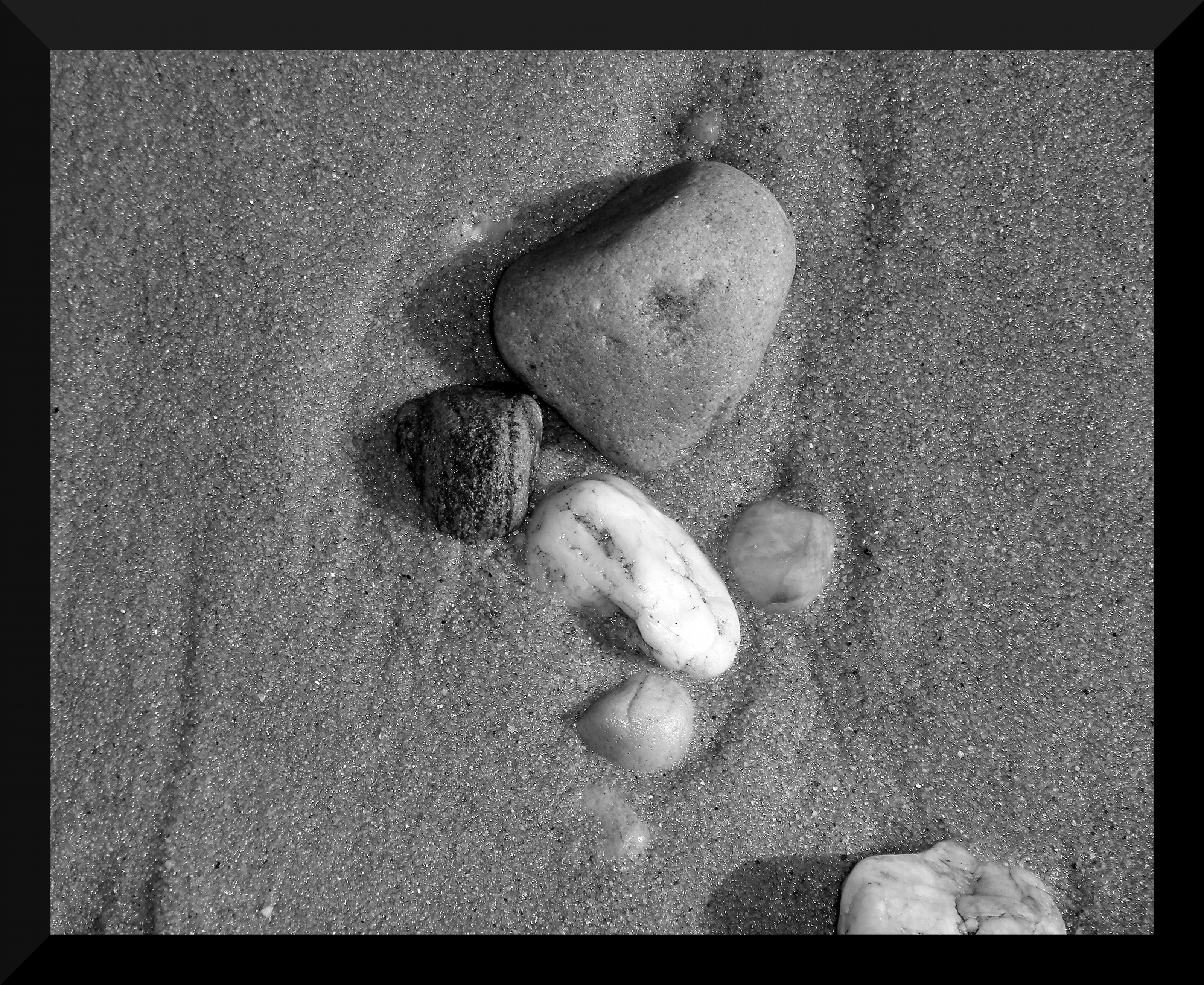 The water just washed up on to shore these rocks, I love the texture of the rock and sand. I think this would be a good desk top. I like this one in B&W , it helps show the texture in the rocks and sand.