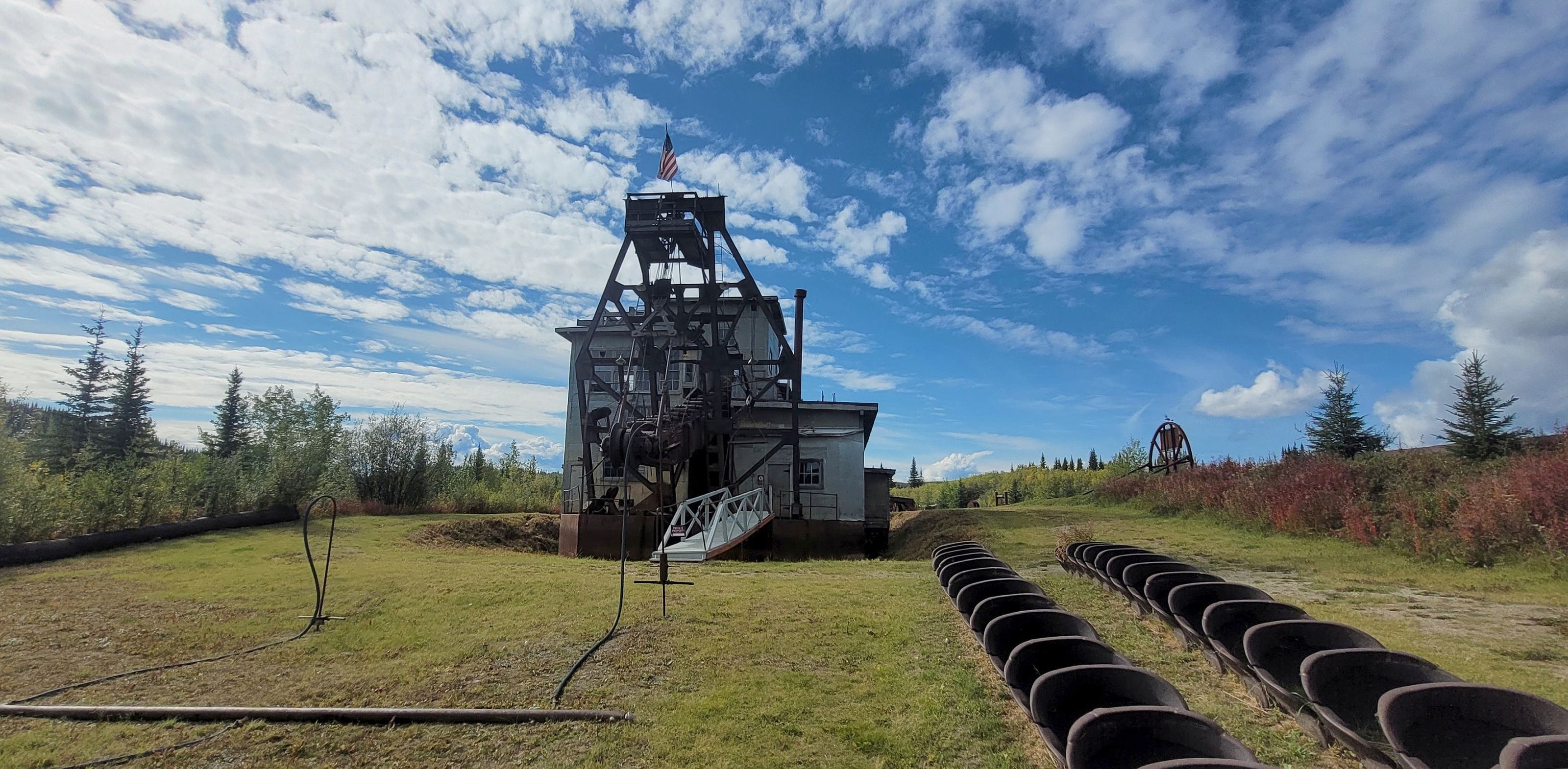 it was mindblowing, because the guys in those years had to set this thing up in a huge pond, where then they were washing gold .... those pipes in front of the dredge were used to get rid of the permanent frost they had, so they could dig into the ground, they "simply" pressed hot steam into the ground .... ..... on the right you can see the shovels they used to dig ....