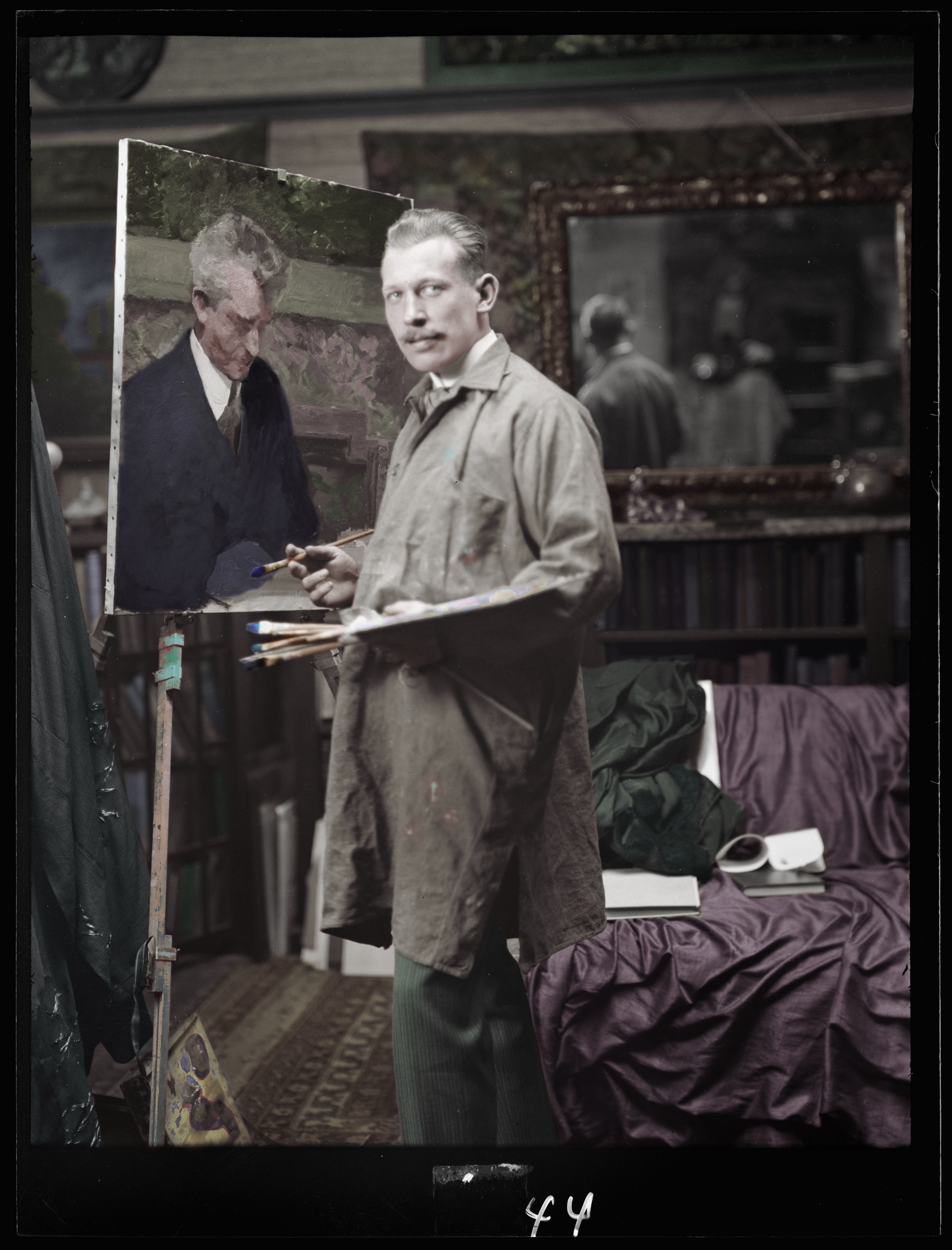 The Library of Congress Painting a portrait of Arnold Genthe 1915 I claim no rights other than colorizing this image if you wish to use let me know and always give due credit to The Library of Congress I have no commercial gain in publishing this image. Title J.M. Williamson painting a portrait of Arnold Genthe Contributor Names Genthe, Arnold, 1869-1942, photographer Created / Published 1915. Subject Headings - Genthe, Arnold,--1869-1942 - Artists Headings Nitrate negatives. Portrait photographs. Rights Advisory No known restrictions on publication.