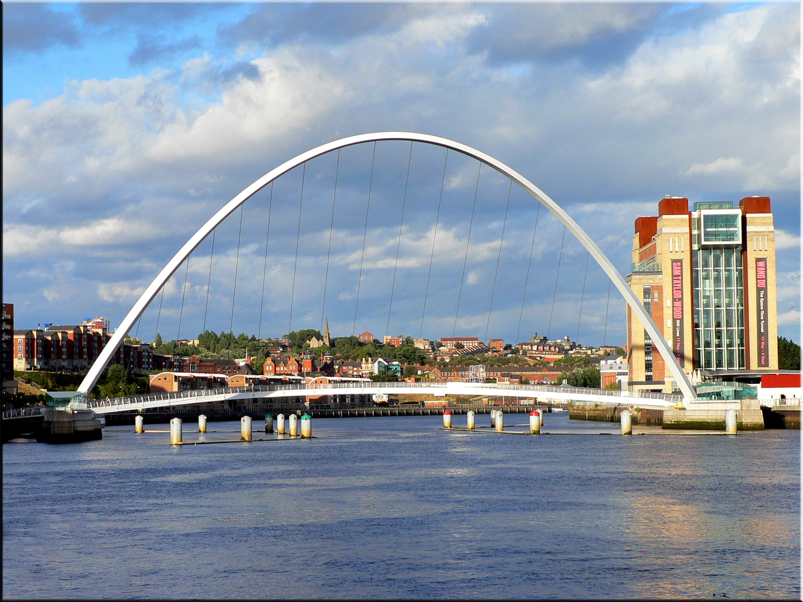 I often visit Newcastle Quayside.This is a shot of the Millenium Bridge.its a real work of art,and when it opens to let ships through,it tilts, like an eye lid .I hope you all like it.