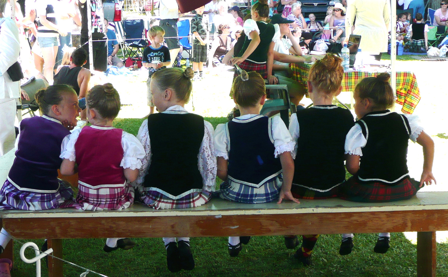 Junior dancers waiting for their turn in the Highland Dancing competition