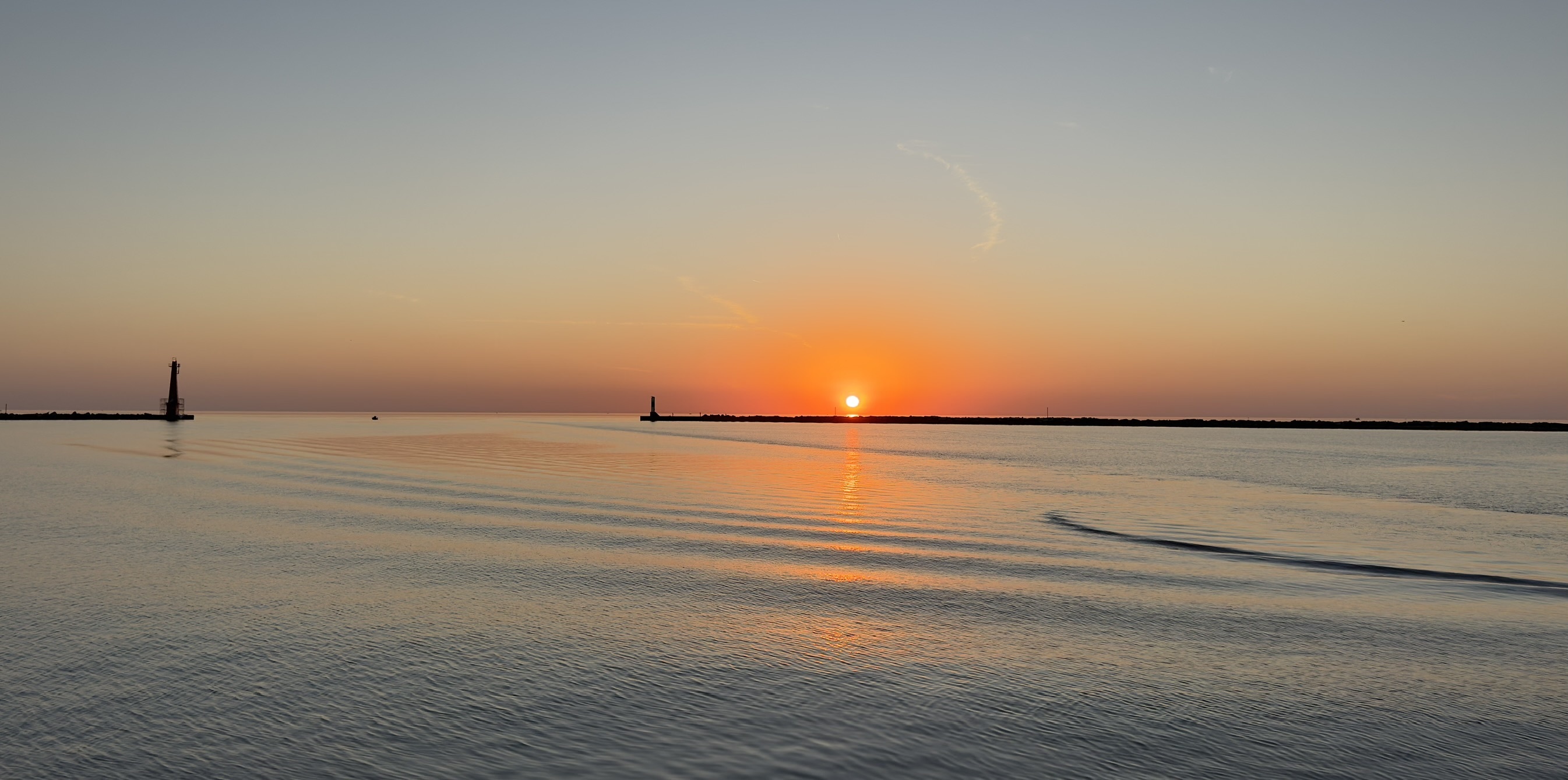 This is the follow-up to #3 after the boat was out of frame. The slight curve of the water in a very calm lake Michigan caught my eye. I want to thank kathy for letting you know that I was having a problem uploading. I did a major update on my phone and it made things different. Idid crop this and then found out how to resize Maybe it affected the quaity. Thanks for commenting. tigs=^..^=