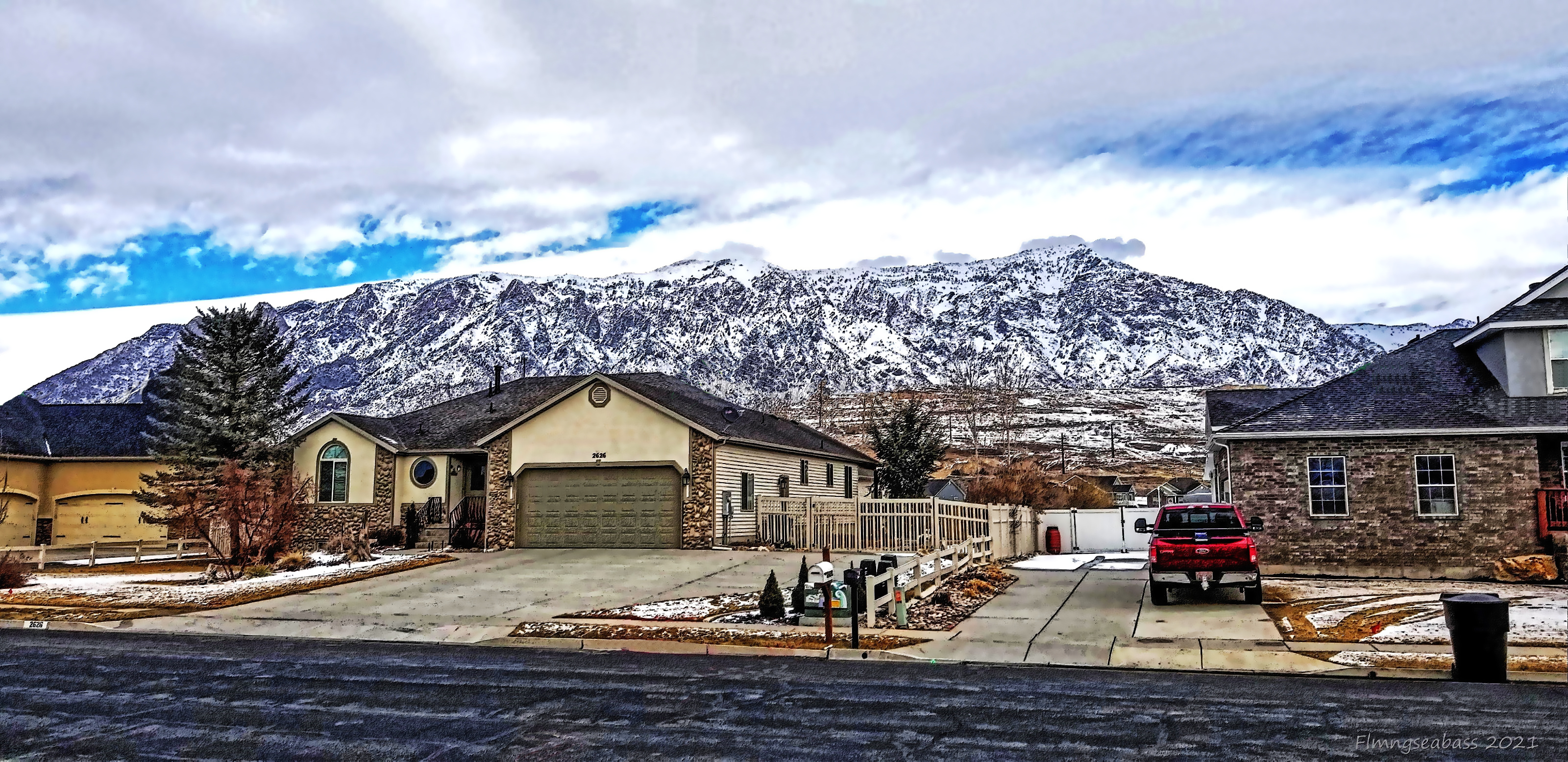 These two peaks are part of the Wasatch Mountains in Utah where I grew up and are just north of North Ogden. This view is from my sisters house in Farr West, Utah, just west of the peaks/range. Willard Peak is the higher of the two on the left/center above the front right corner of the left house by 48' with Ben Lomond on the right. I climbed to the top of Ben Lomond when I was 19 with two of my brothers and we basically went up the south face....the HARD way with sack lunches that spilled out half way up so we only had half the amount we had when we started:):):) We only spent about 30 minutes on top and quickly descended down and we were so hungry when we got to our vehicles we went straight to the hamburger joint to eat!! It took us 5 hours to climb up and 2 coming down:):) A bit of HDR to enhance the image:) Thanks for your comments.