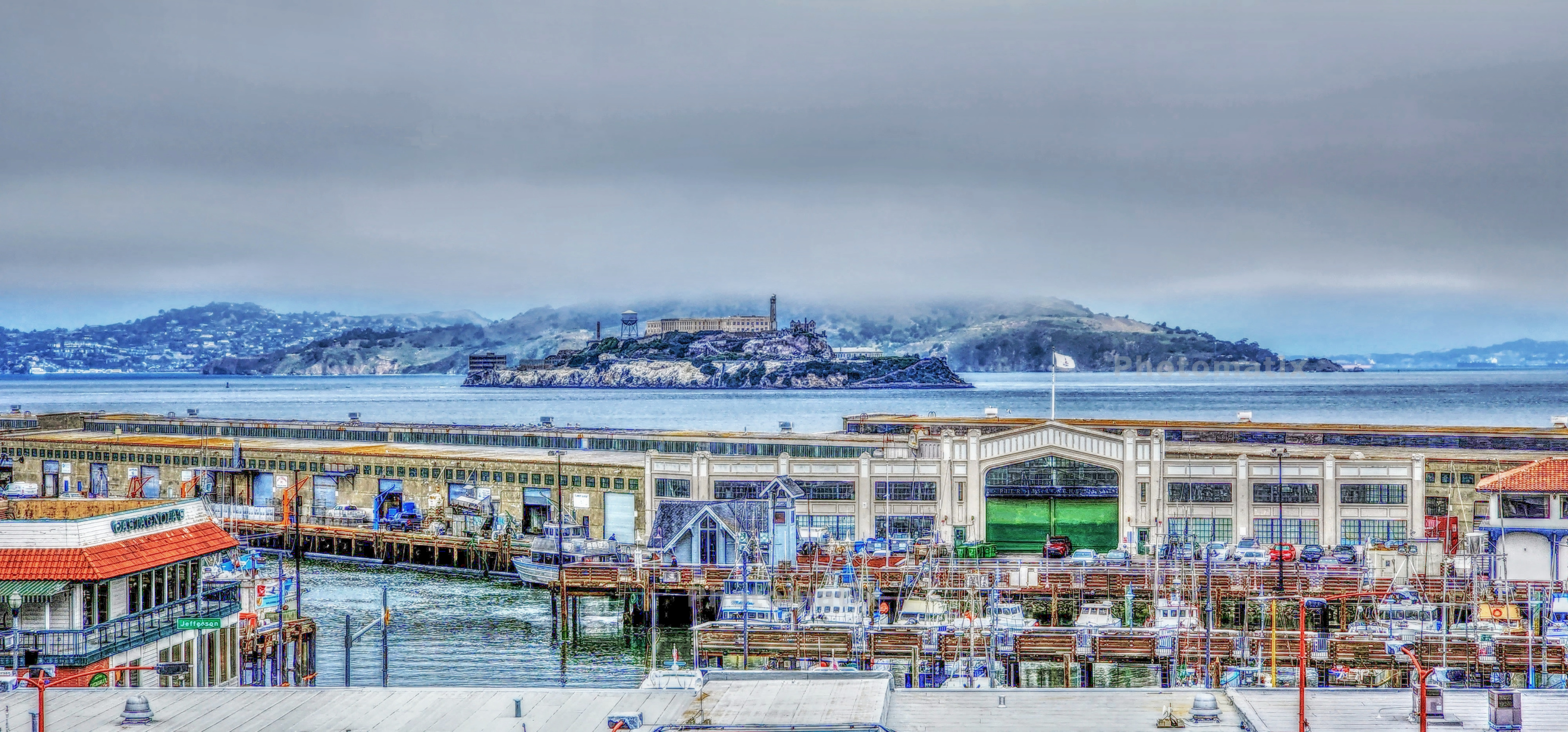 This view was from atop the Kimpton Alton Hotel-Fisherman's Wharf on the corner of Jones and Beach streets in SF of course:) I get some great views from the rooftops of the buildings I inspect so I have to share them with my Caedes friends:) The weather was dominant with the low overcast sky's. Enjoy!! Enhanced with Photomatix Pro 7:)