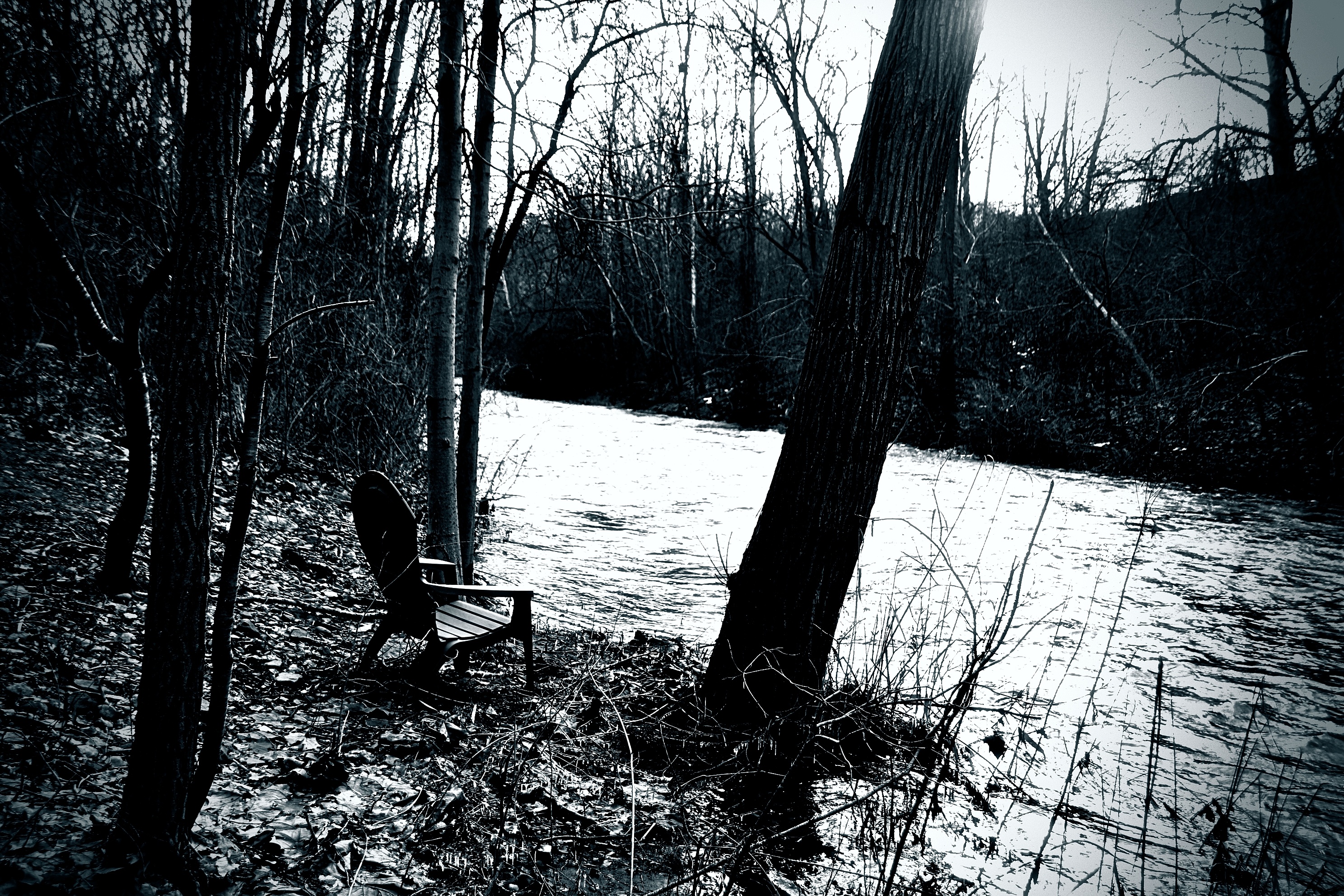 A random lawn chair near the creek shore. I did have a seat for a minute or two.