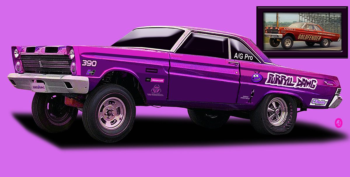 ...When I was a kid, I used to always enjoy going to the local dragstrip with my father and his friends to watch the quarter-mile races...My favorites were the modified, jacked-up Gassers... How I loved the roar of the mighty engines, and the wheelies they'd pull at the starting line when the driver smashed the accelerator pedal to the floor! Those were the days!