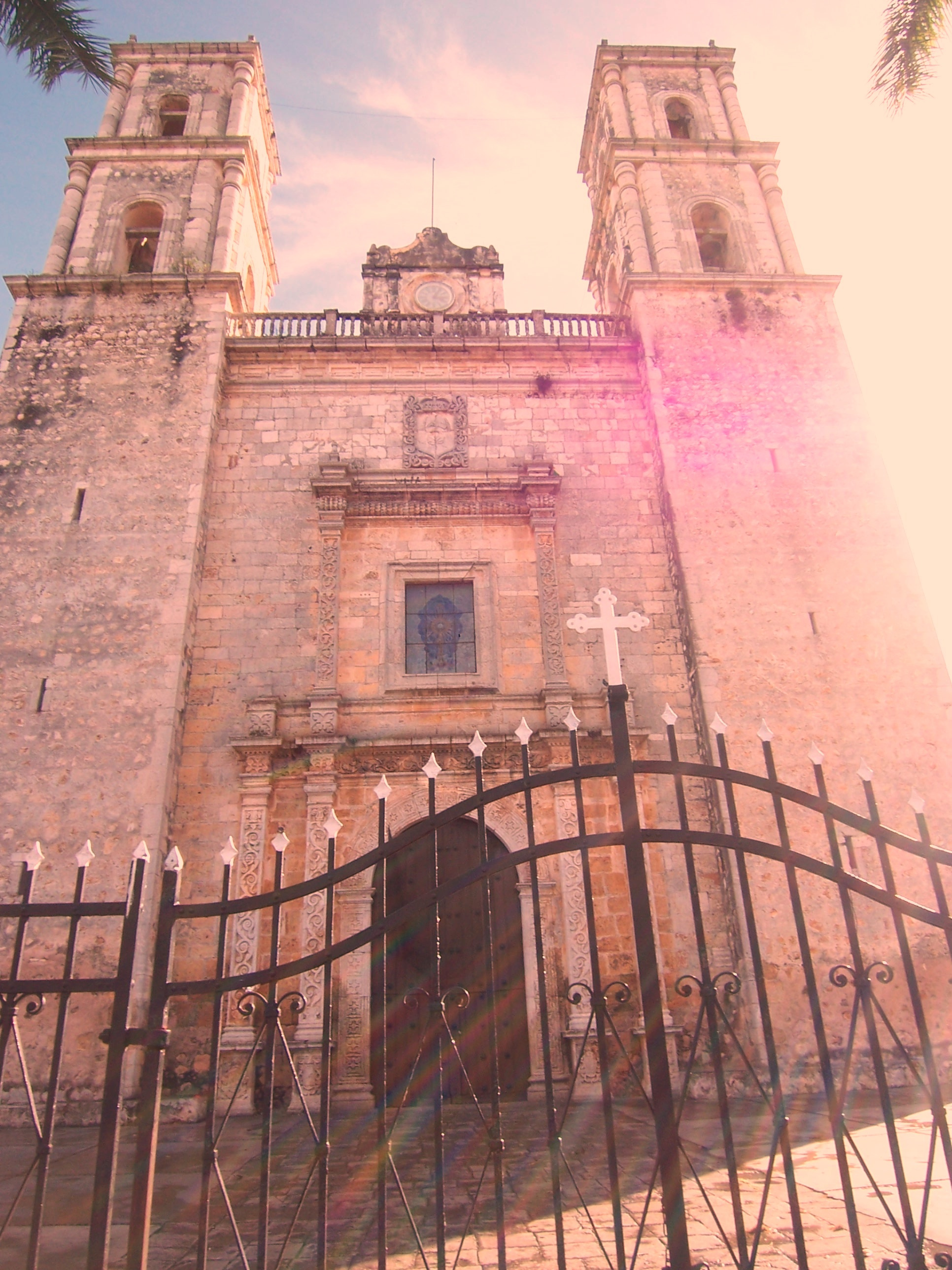 While driving home from Chichen Itza we passed through a small town and our taxi driver decided to stop and let us look around the town a bit. I couldn't help but notice that amidst all the other buildings, this beautiful church just stood out. I'd never seen a church like this until we stopped there, and I just had to take a picture. Sadly I was pressed for time to take the shot, and its not as good as I hoped, but I just wanted to share it with you all. =)