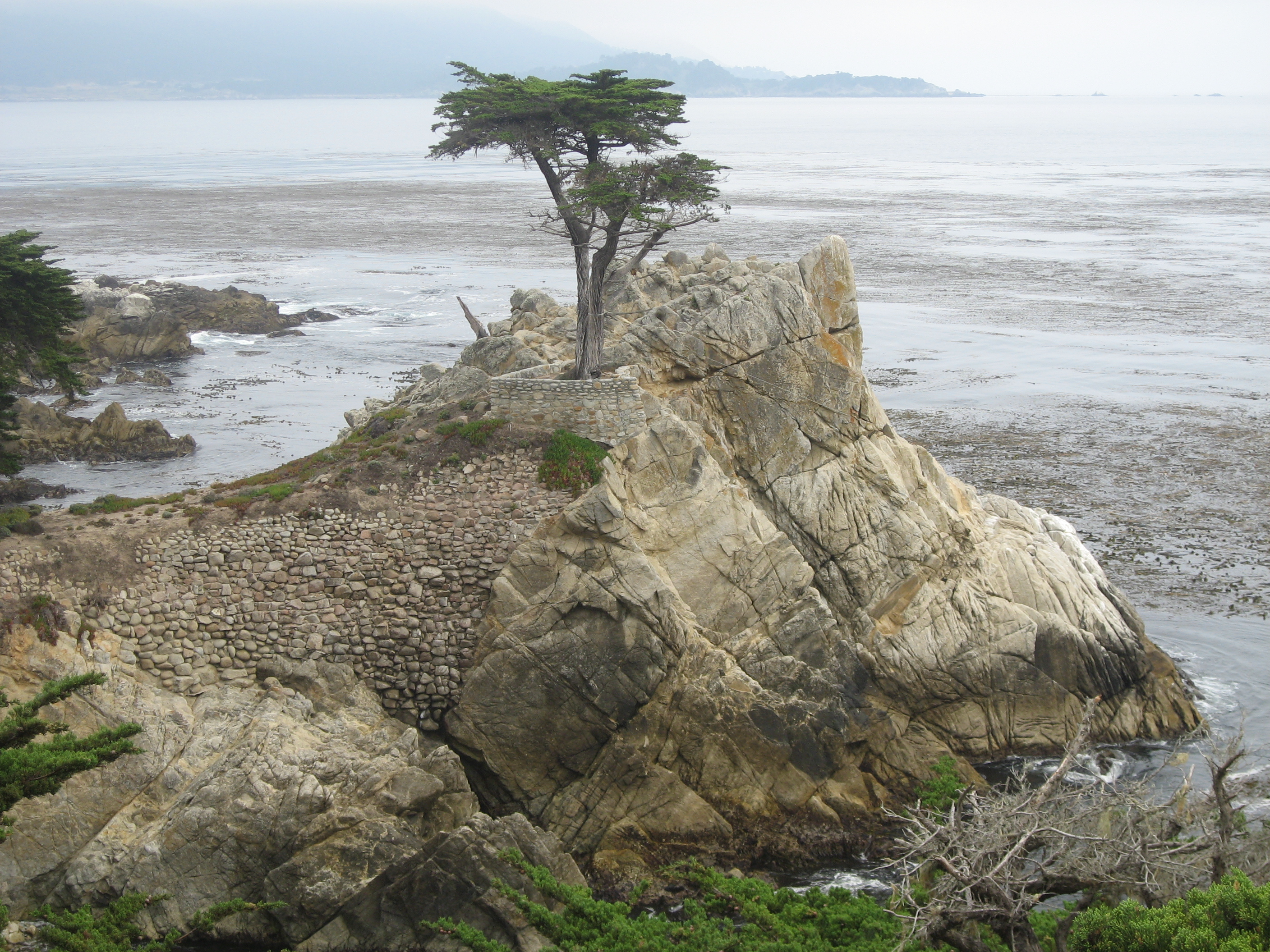 This is the famous iconic Lone Cypress tree at Pebble Beach along 17-mile drive. It is the official symbol of Pebble beach.