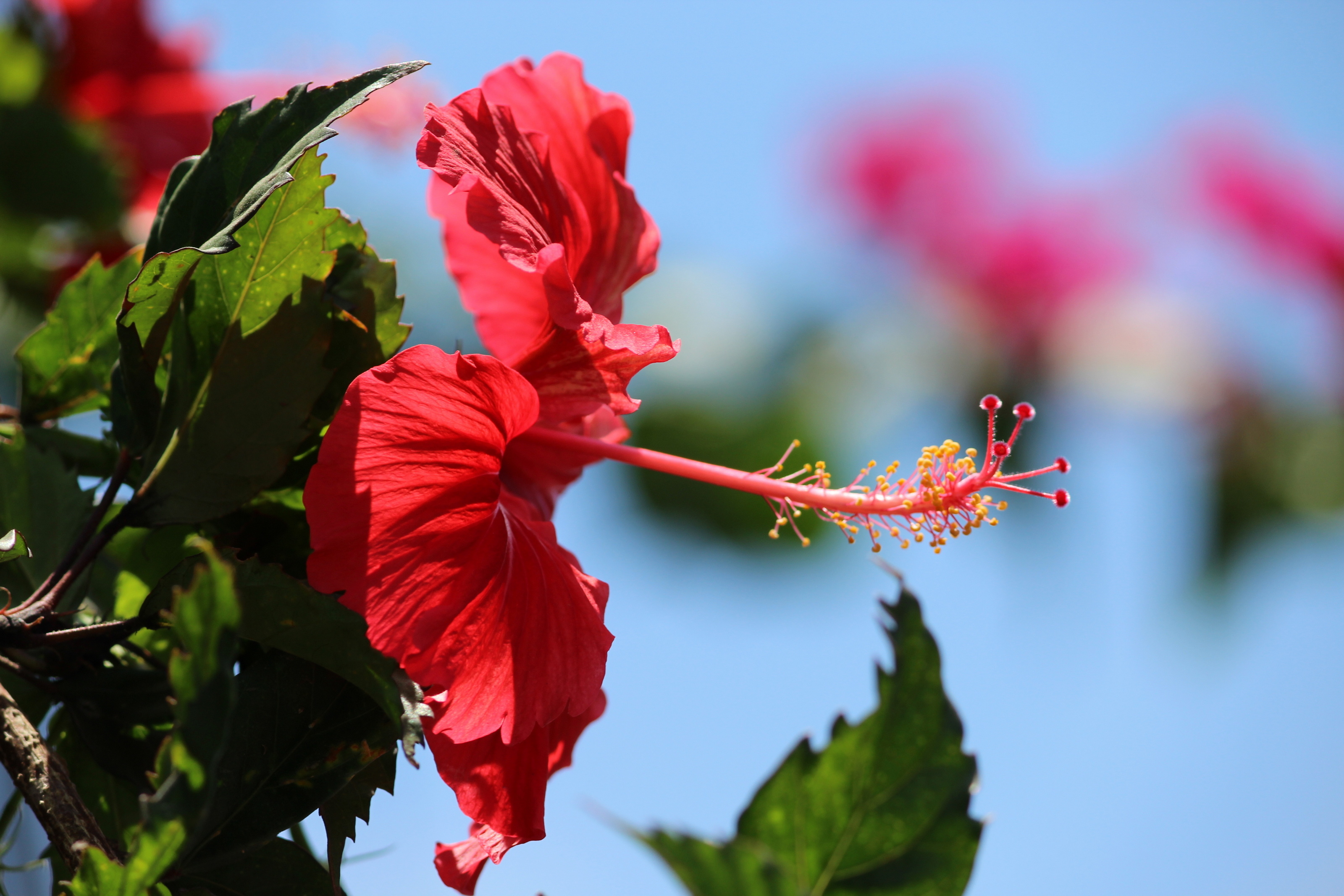 I tried taking a close-up of this flower from several different angles, but its long stamen stymied me. I couldn't manage a good focus, except for a side view. Another flower that I don't know, but then there seems to be a lot of them in Bali. Update: Thanks again for all the help identifying the plants. It is a hibiscus tree.