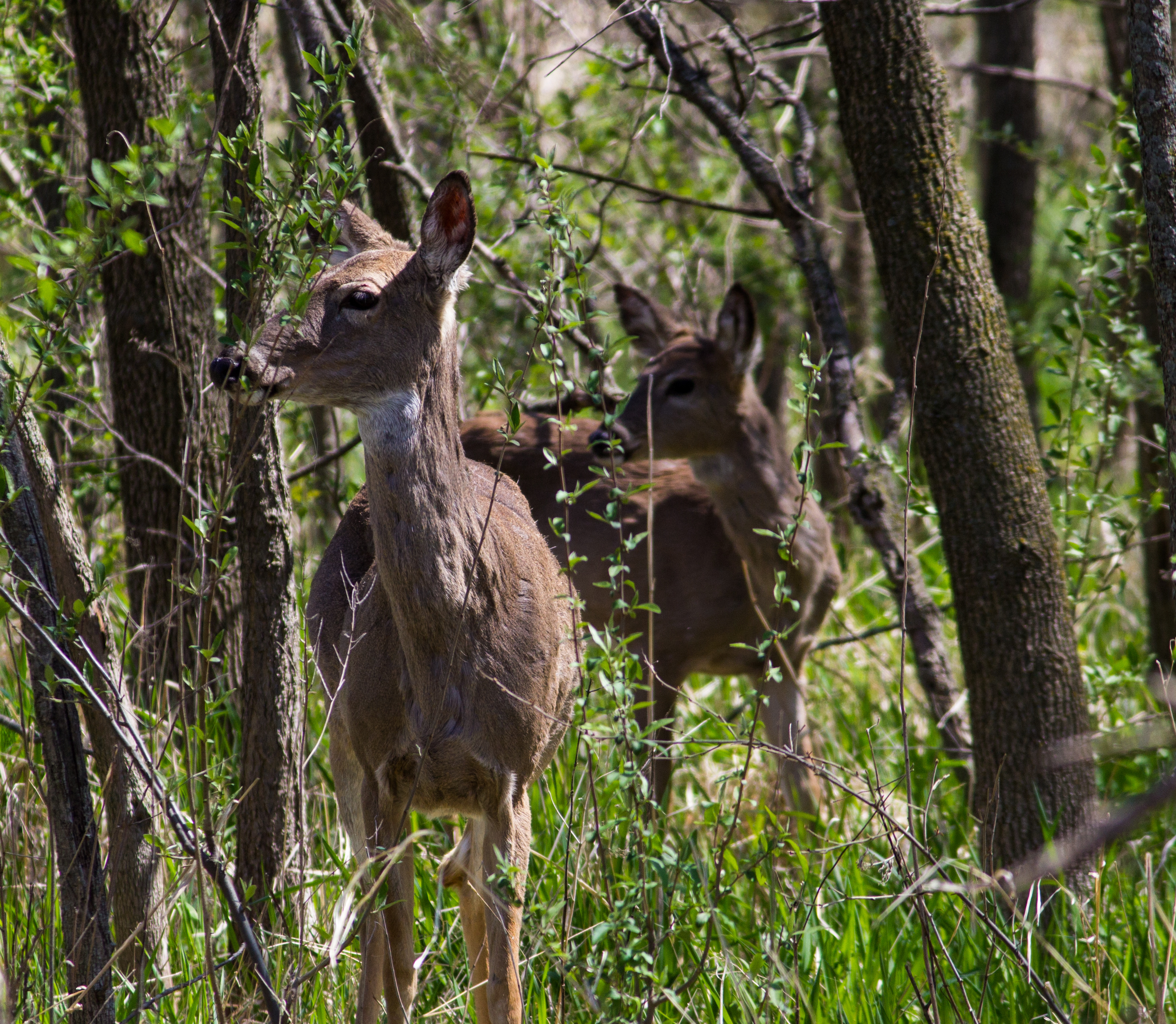 Walking down a path, I kept careful watch to the right where I've seen deer before. A jogger passed me on the left and that was when I realized that were were several deer there, just a few feet away.