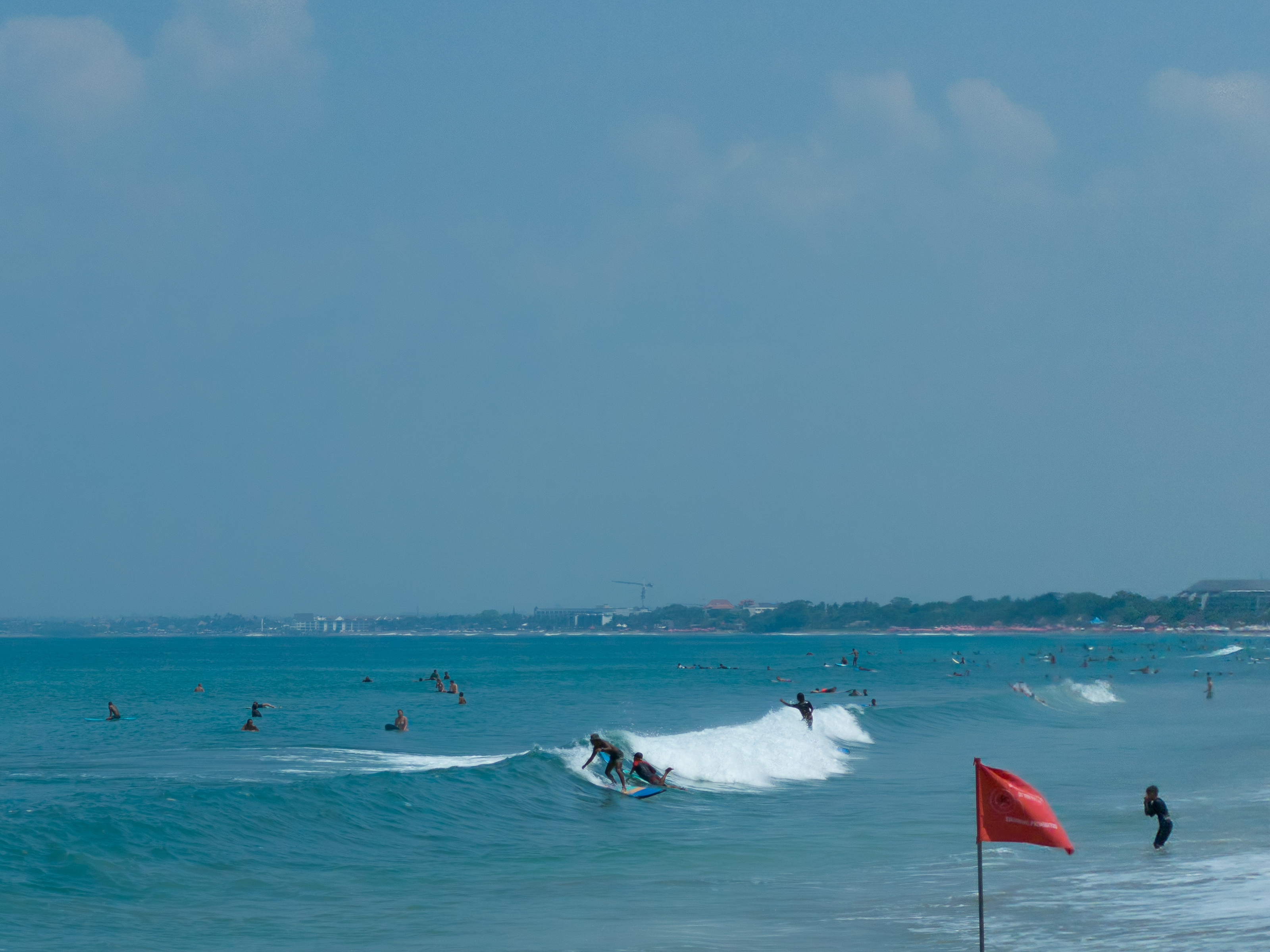 The waves were not strong, so it made a good day for people to get out and practice their surfing skills.