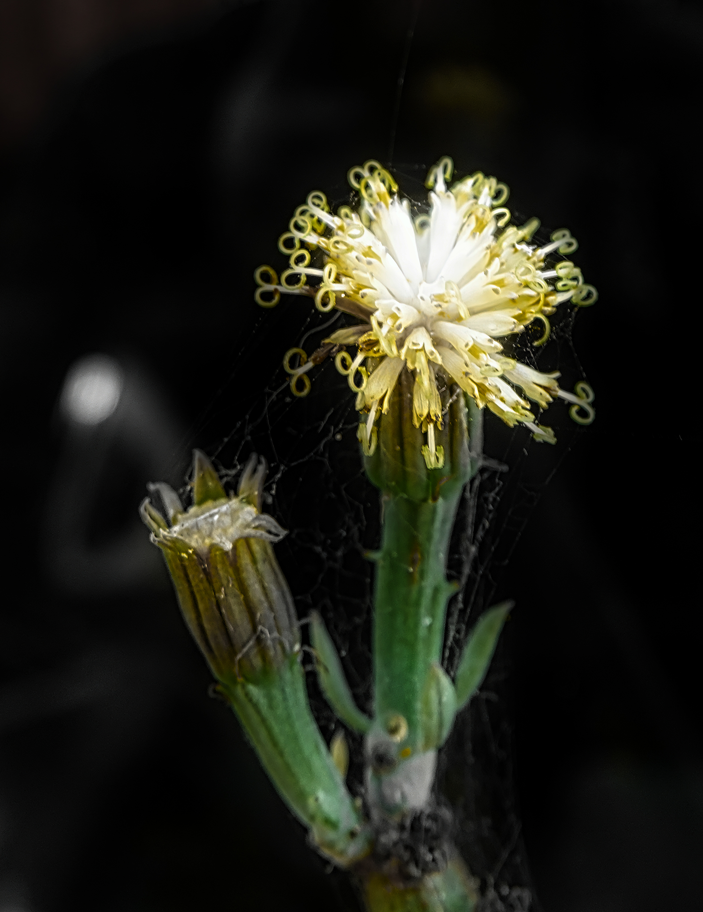 Happy Foofy Friday on this Thursday morning. This odd-looking bloom belongs to one of my succulents. This bloom is about the size of my small fingernail. For whatever reason, the spiders seem to love this plant.