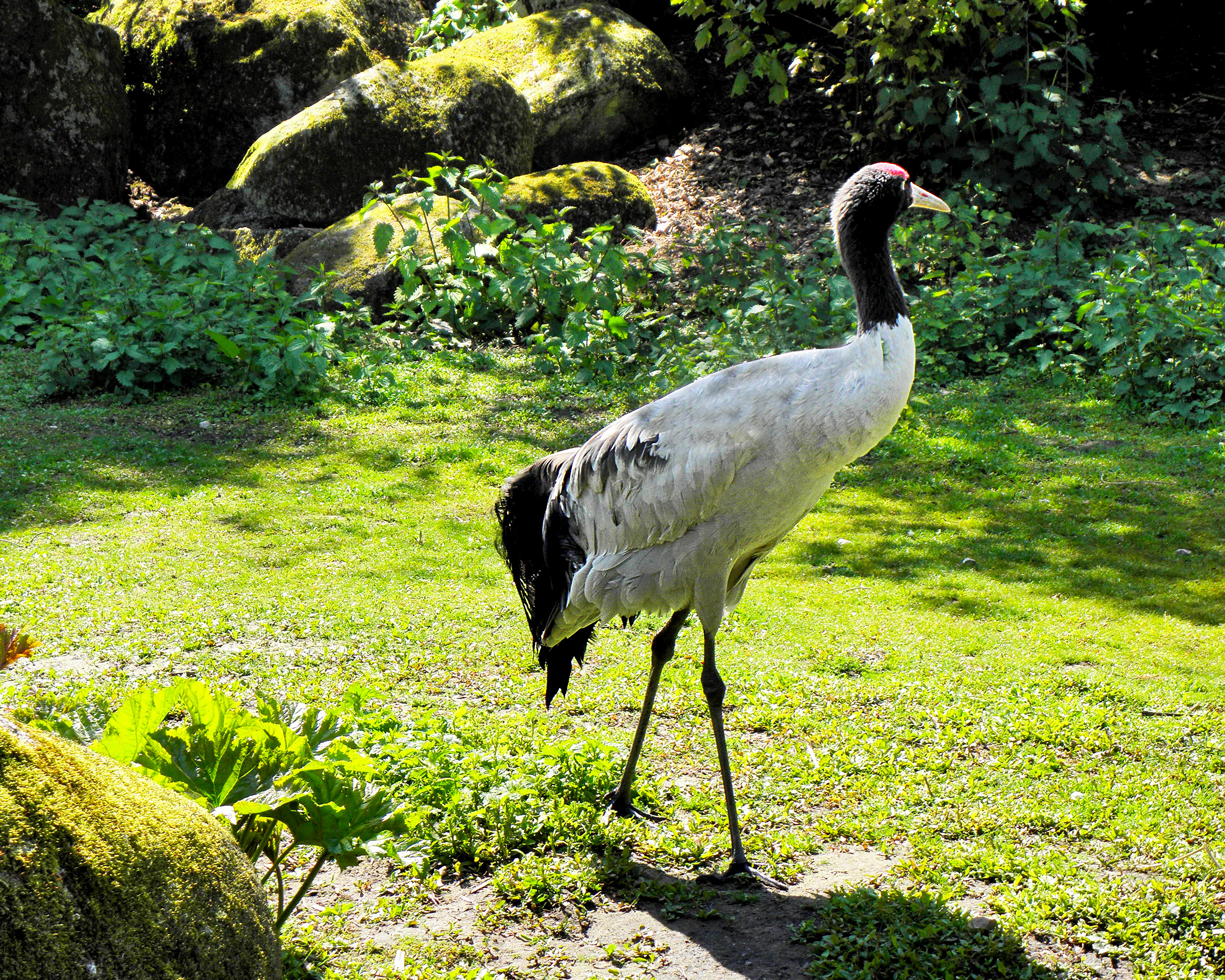 The Red Crowned Crane latin name "Grus Japonensis" is a large bird. It is the second rarest crane in the world and is found in Korea, Japan and China. The red patch on its head becomes bright red when the crane is angry or excited. So here you can see that it was not excited to see me :)