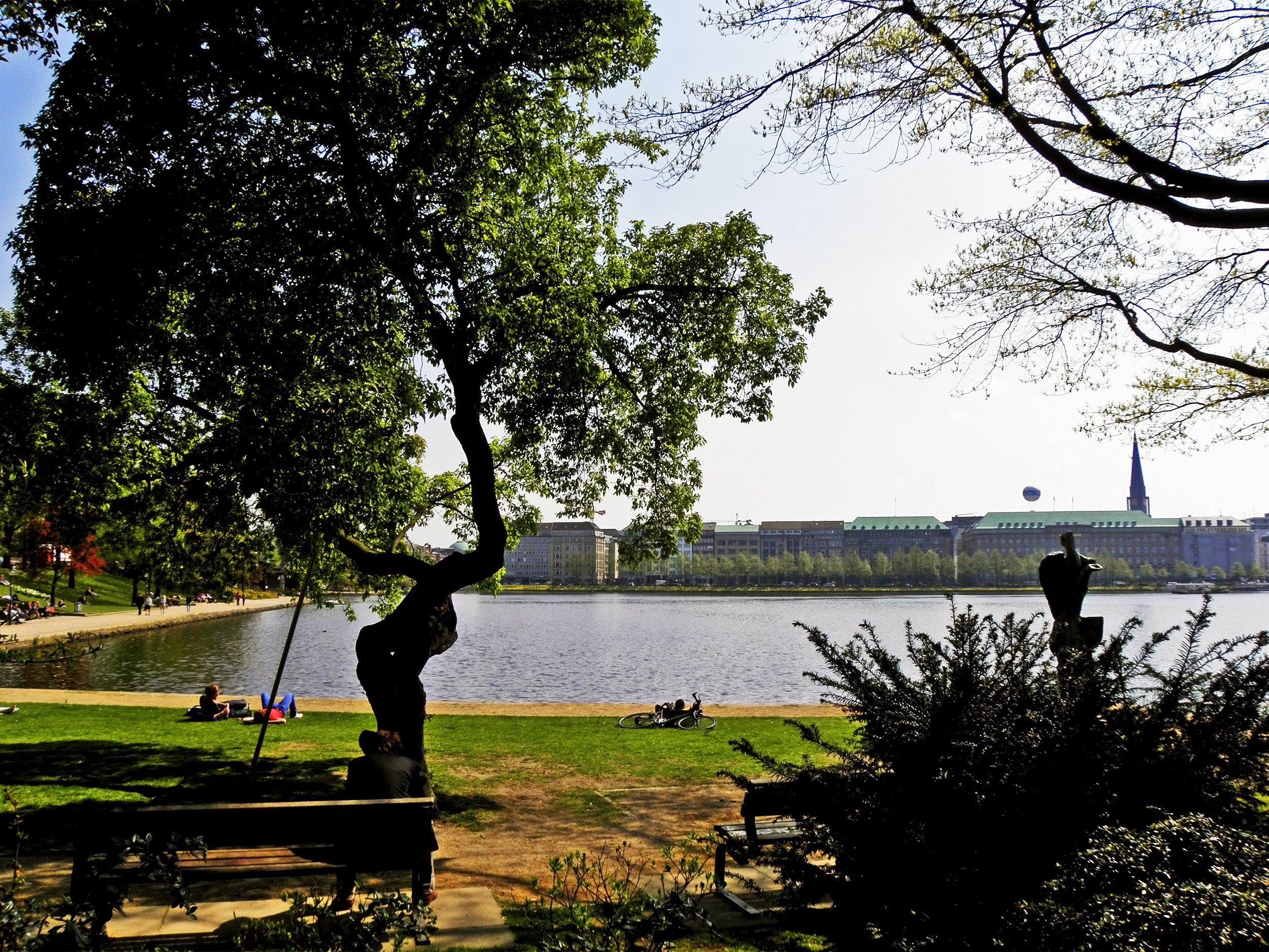 Hamburg has a huge lake in the centre of the city. This shot was taken this afternoon.