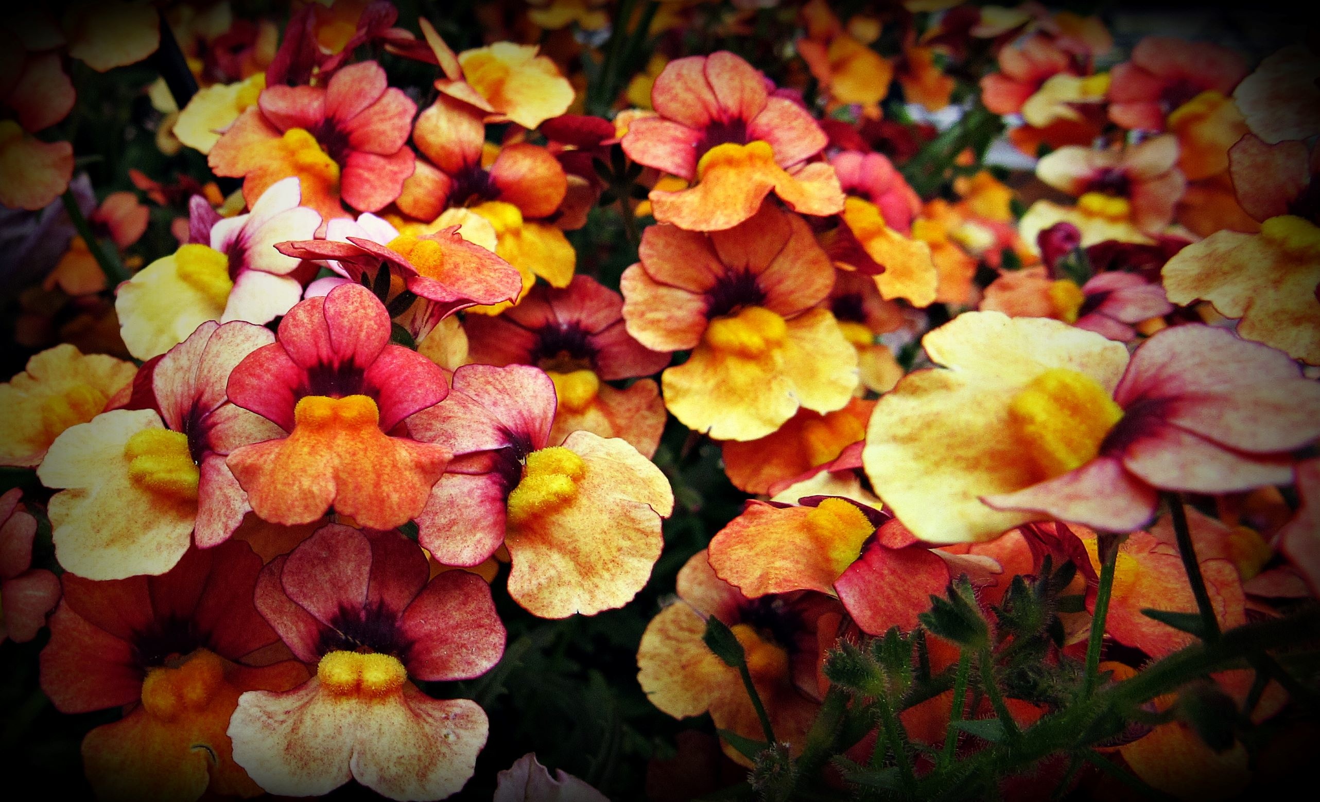 A hanging basket of beautiful bloom smiles graces the north side of our home. I had never seen these before and do not know the name of the plants. I had to capture their wonderful bloom smiles to enjoy over and over.