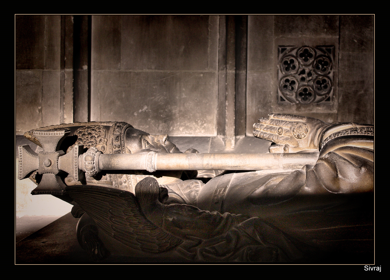 One of the many sculptures commemorating the dead buried in Canterbury Cathedral.
