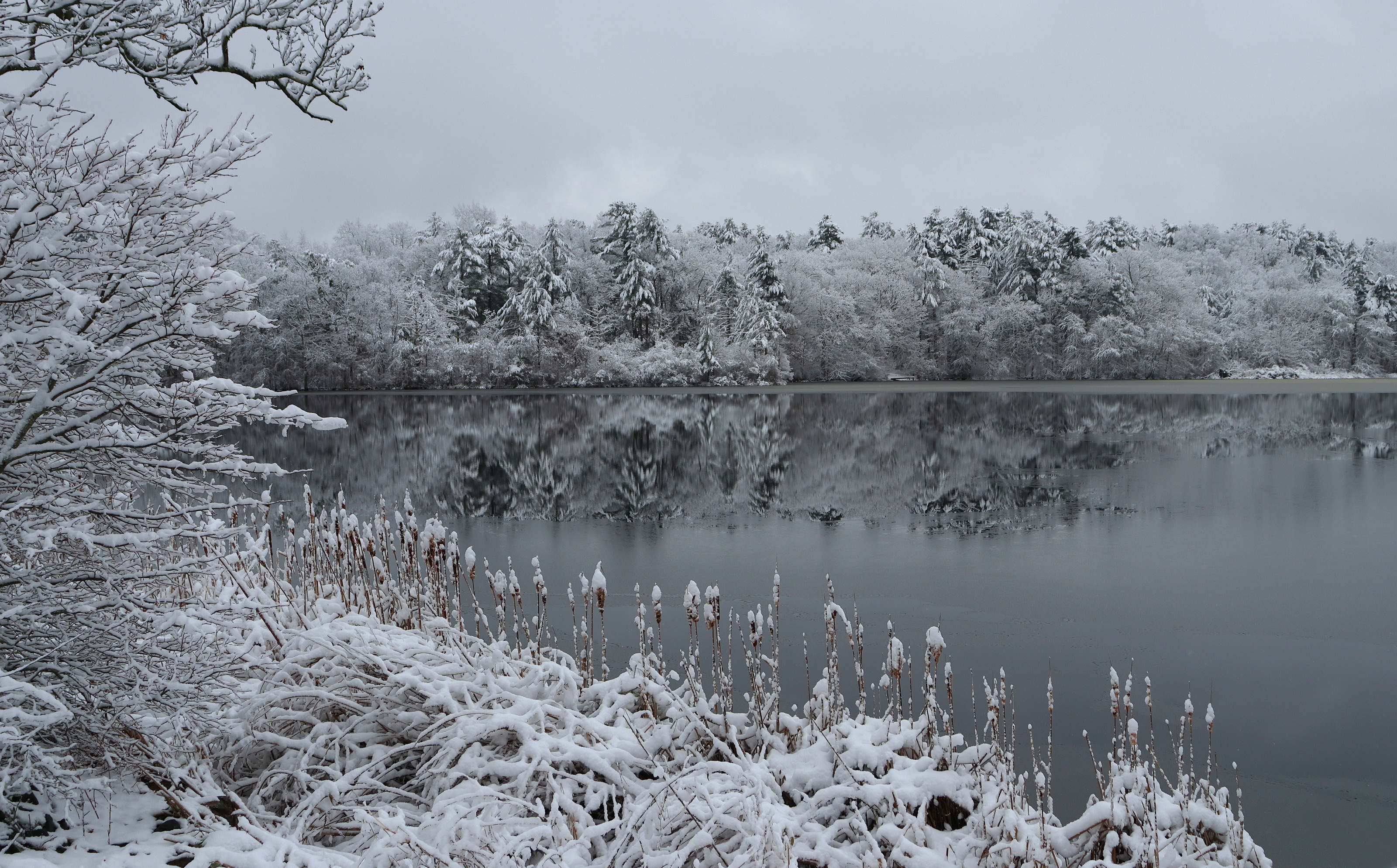 The ice is starting to freeze leaving some spots of reflection.