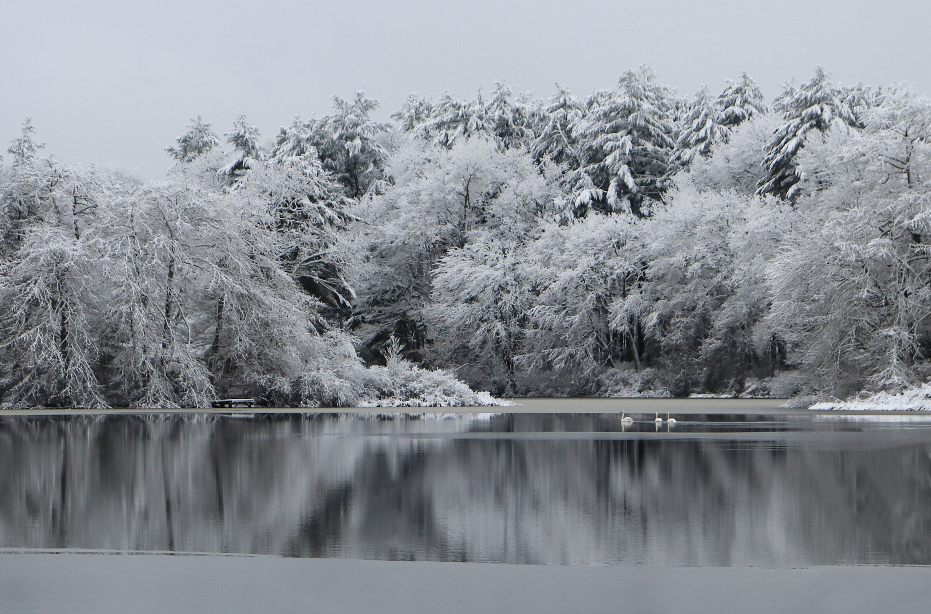 The cold weather and snow does not seem to bother these swans or stop them from a swim. These are the same swans that are in the photo that I posted " Watch Your Step " a few days ago. They did make it to the open water shortly after I took that photo.