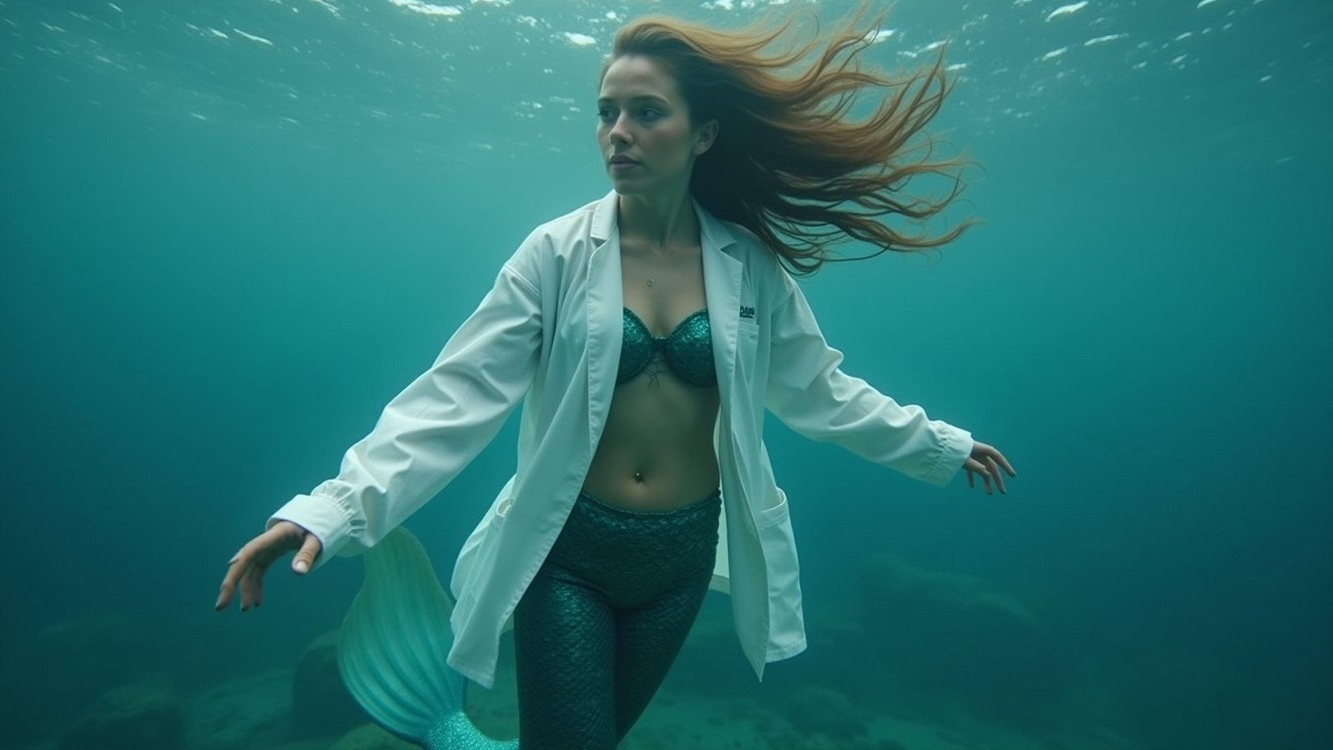 Some mermaids roam the vast oceans. Some mermaids enjoy the safety of a cozy aquarium. All mermaids are proud when they have earned the right to wear the lab coat we all covet so much. Brought to life with AI (Stable Diffusion and Firefly).