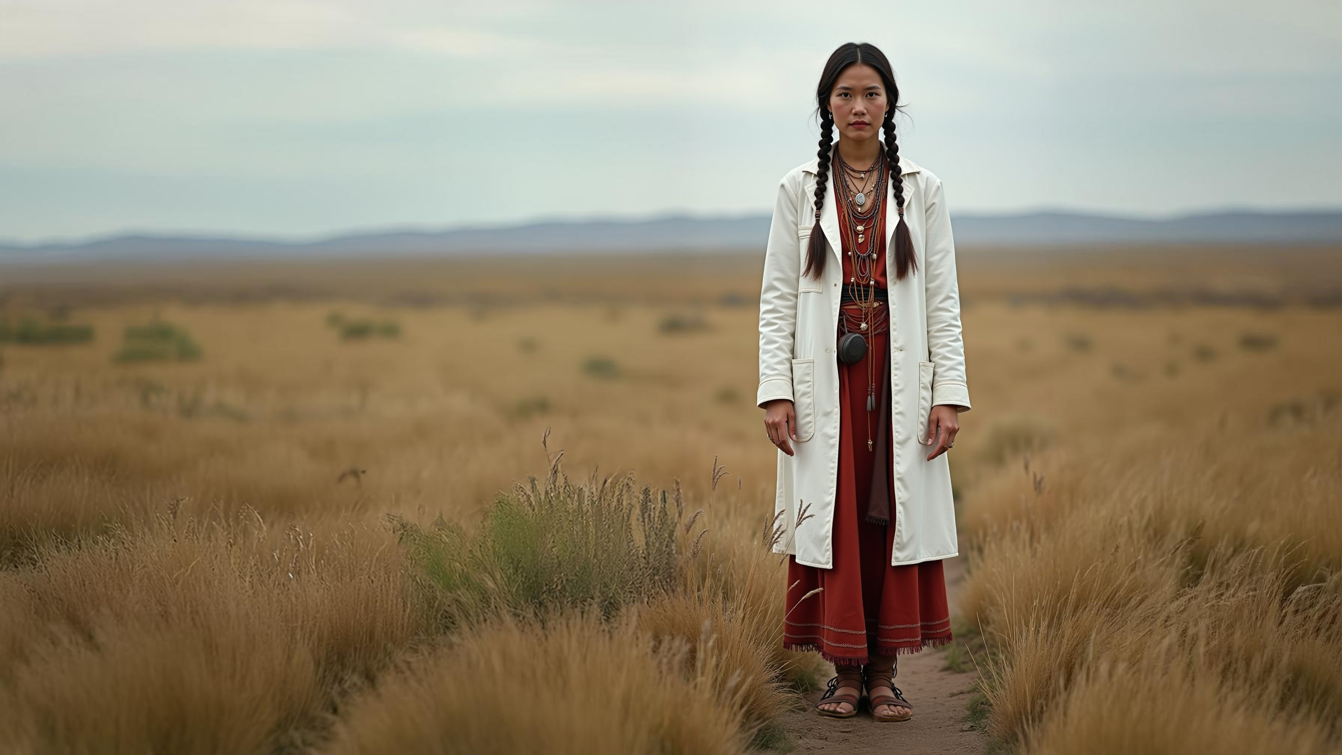 Laboratory technology is an essential part of the indigenous culture of the Americas. Not many indigenous people wear lab coats anymore, but the proud tradition has not completely disappeared. Brought to life with AI (Stable Diffusion and Adobe Firefly).
