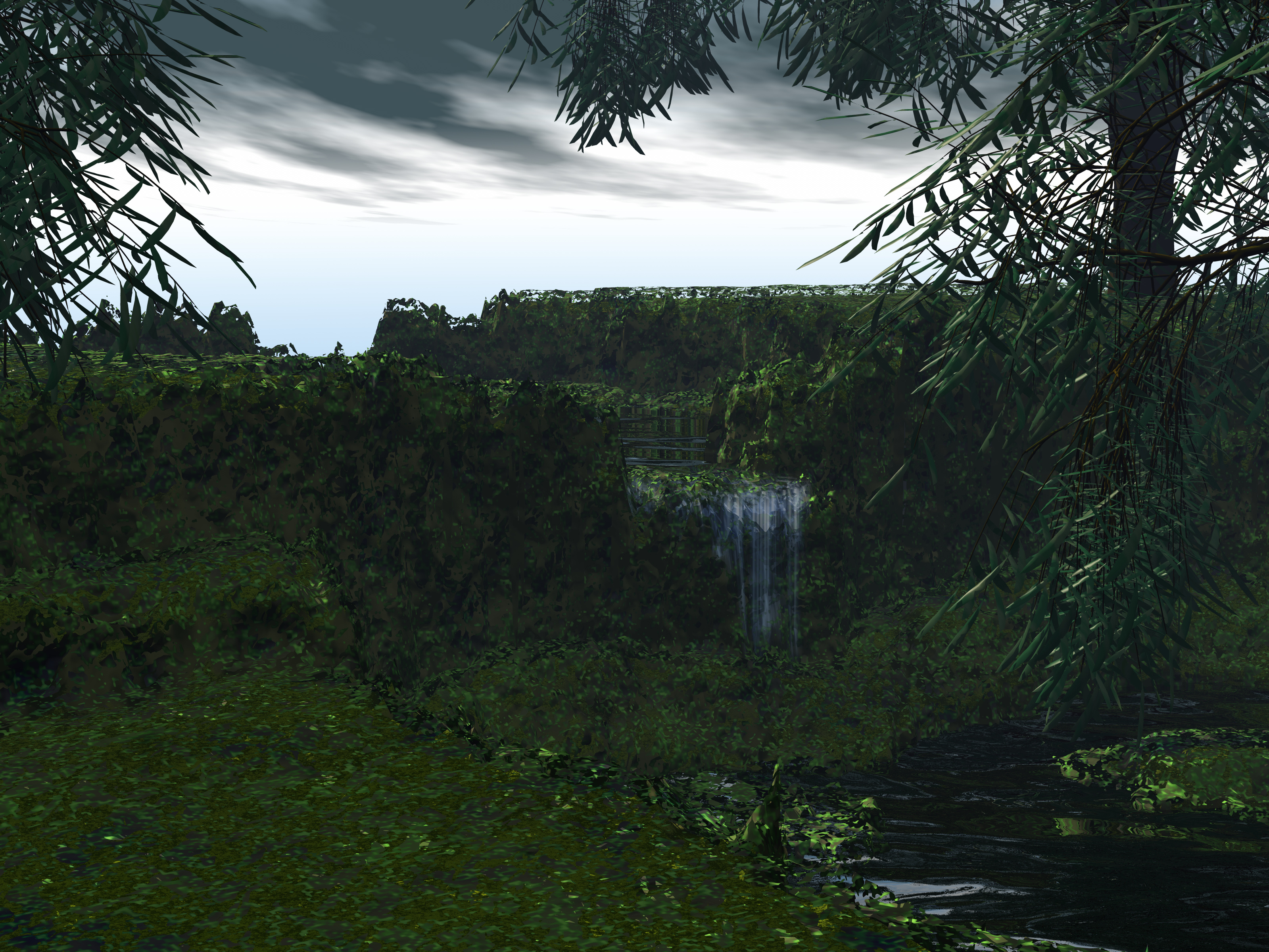 First populated scene. Played with falling water just a bit. I had no idea how difficult it was to create such a simple 3d scene. Still learning, a lot to take in and remember. Just a quick comment, I glanced over some of your scenes in the gallery, there is some amazing work in there "impressed".