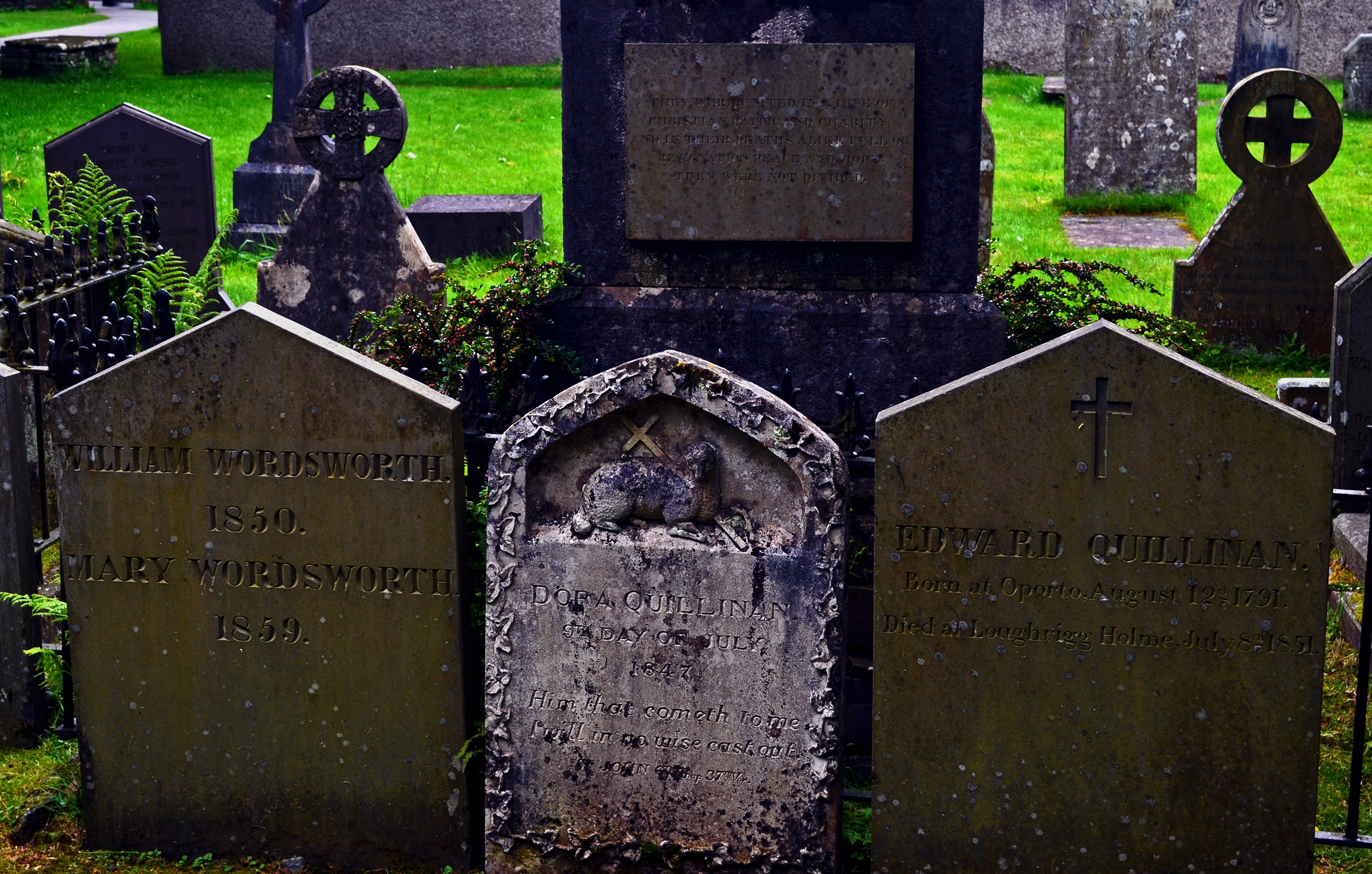 William Wordsworth (7 April 1770 23 April 1850) was a major English Romantic poet who, with Samuel Taylor Coleridge, helped to launch the Romantic Age in English literature with the 1798 joint publication Lyrical Ballads..Here is his Grave and that of his wife and sister in the grave yard in Grasmere.. I wandered lonely as a cloud That floats on high o'er vales and hills, When all at once I saw a crowd, A host of golden daffodils; Beside the lake, beneath the trees, Fluttering and dancing in the breeze