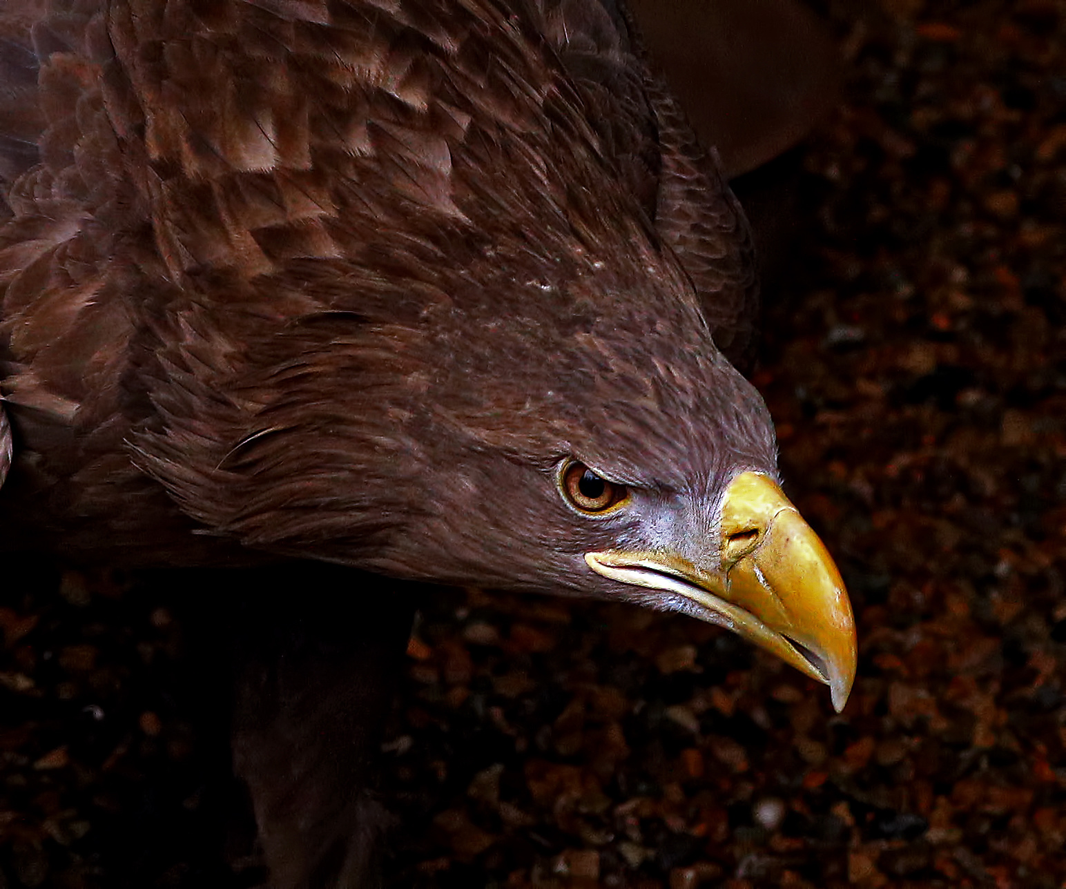 Sima the White Tailed Sea Eagle lost his cool with his keeper and started pecking holes in his boots..And yes they were steel Toecaps..Sparks were flying....R.