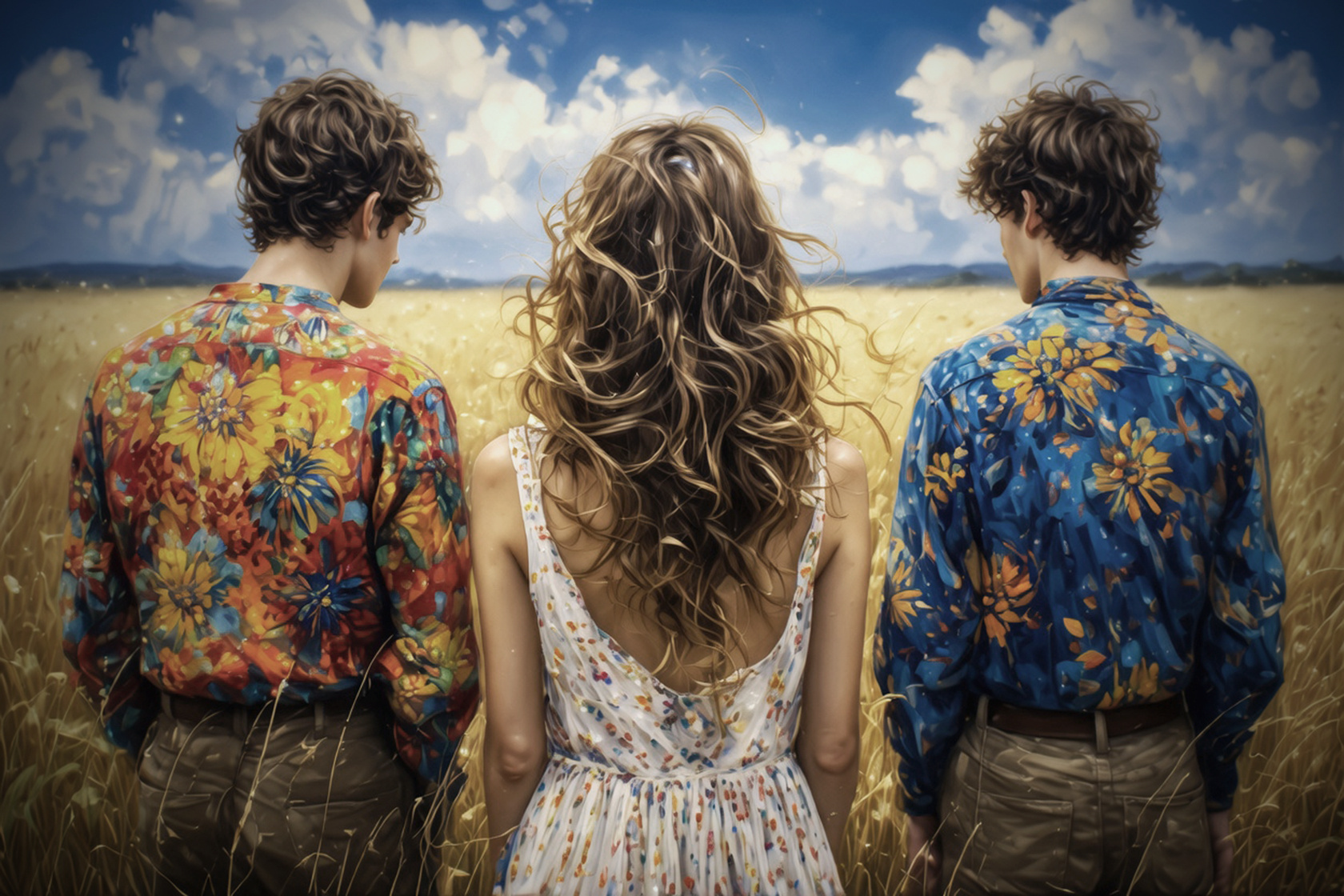 You both stand there, your long hair flowing