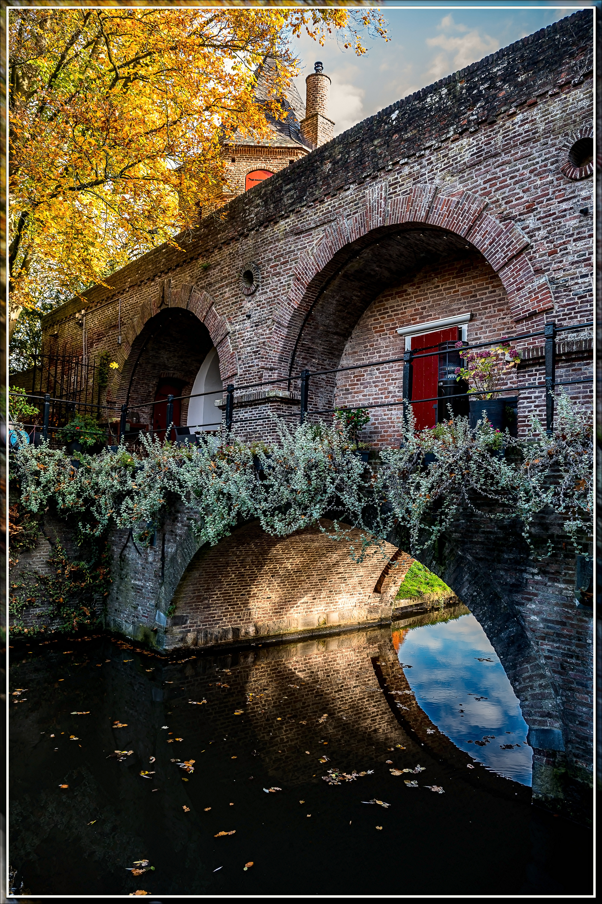 This is another image of the Monnikendam, a historic water gate and bridge structure in Amersfoort, The Netherlands. The image was taken in the Fall of 2025 too (November 8th).