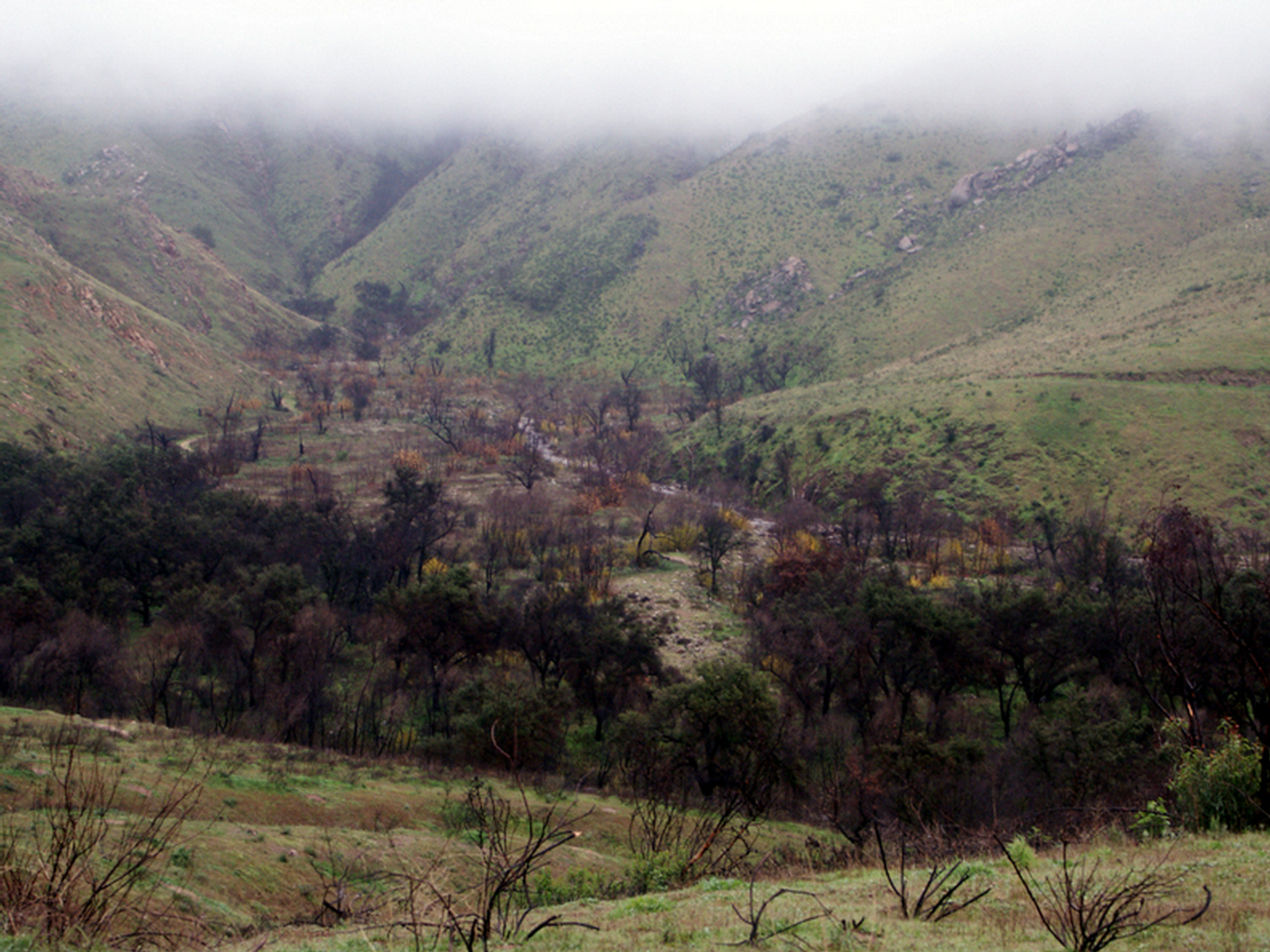 This image was taken in the canyon where San Diego County's Cedar Fire of 2003 was started by a lost hunter. It's damp now, but you can find metal fence posts bent 180 degrees from the heat of the fire. A major disaster for the San Diego area.