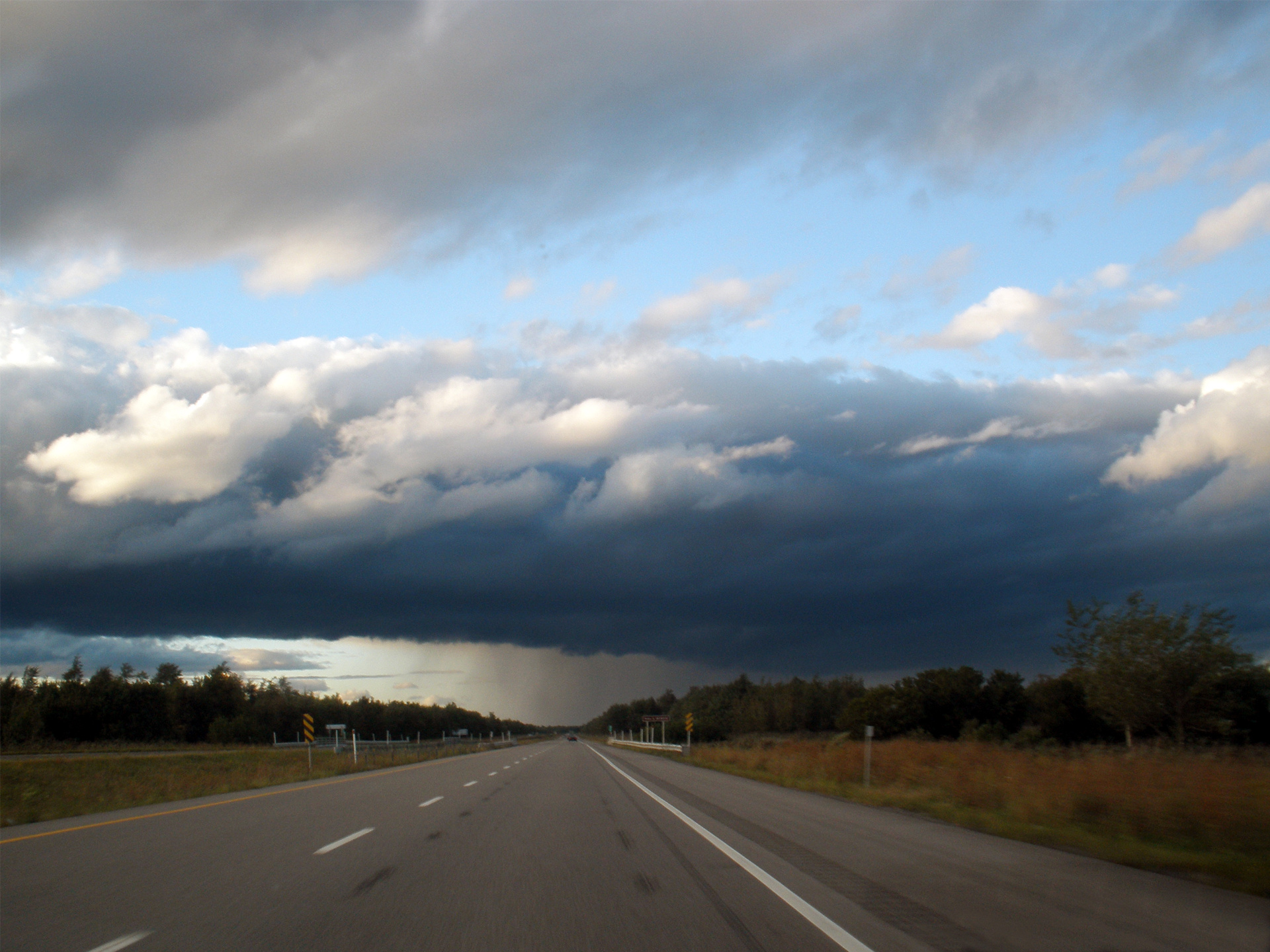 Texting while driving is unsafe and I don't do it, and photography while driving isn't much better so I usually don't do that either. But this monster cloud ahead moving its downpour over the highway was irresistible. The motion caused a little blurring near the edges but in general I was happy to get this souvenir. When we got into the rain it was coming down like Niagara Falls. Okay, *almost* like Niagara Falls.