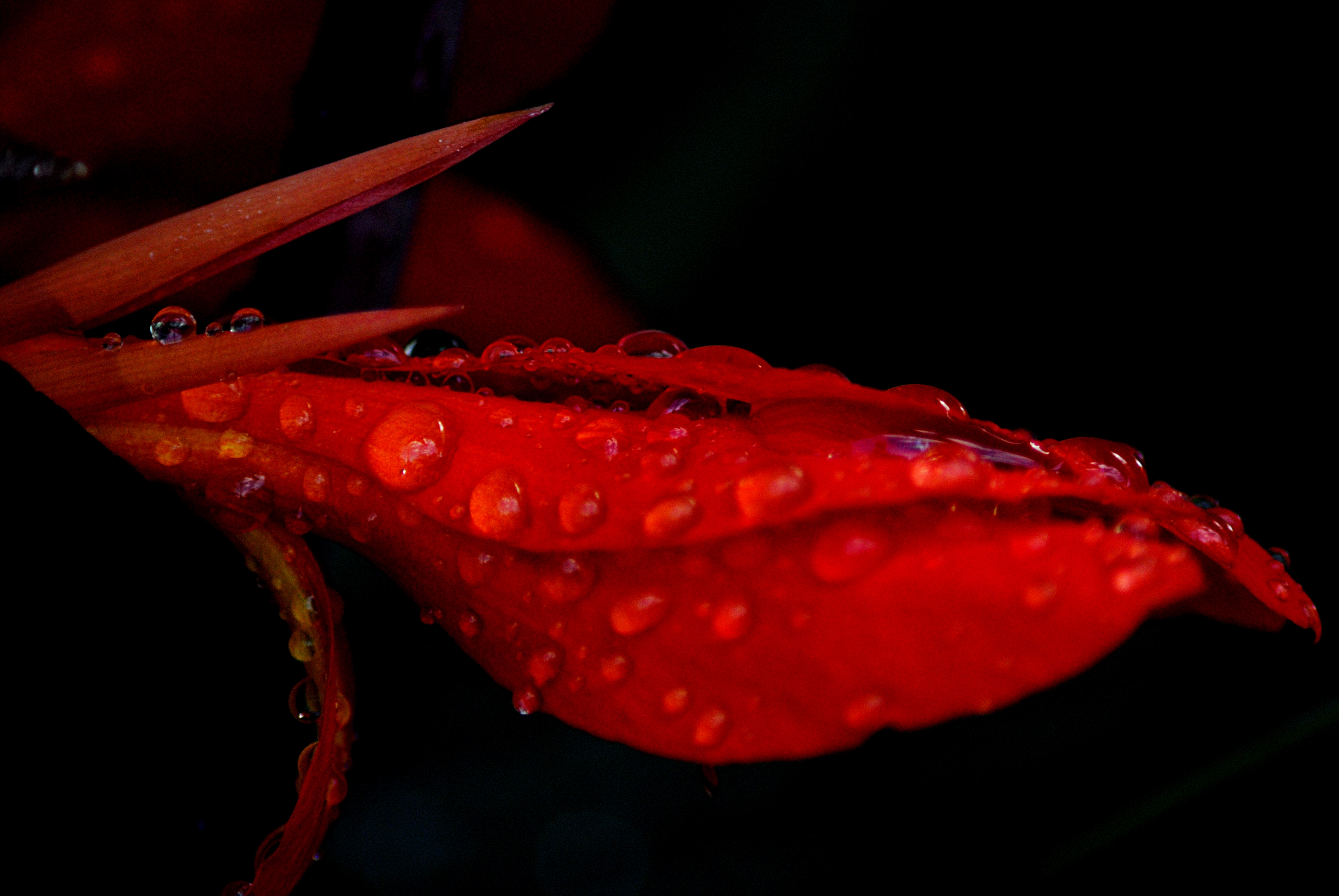 After a heavy rain this flower was hiding under a large leaf of the plant. Nearly every day I pass by this plant but it was so pale and dry. Rain had made it a wonderful target to take photos. (Nikon D3000 + Tamron 70-300, 300mm, f5.6, 1/200, ISO 400, -1EV, handheld, shutter priority, macro mode)