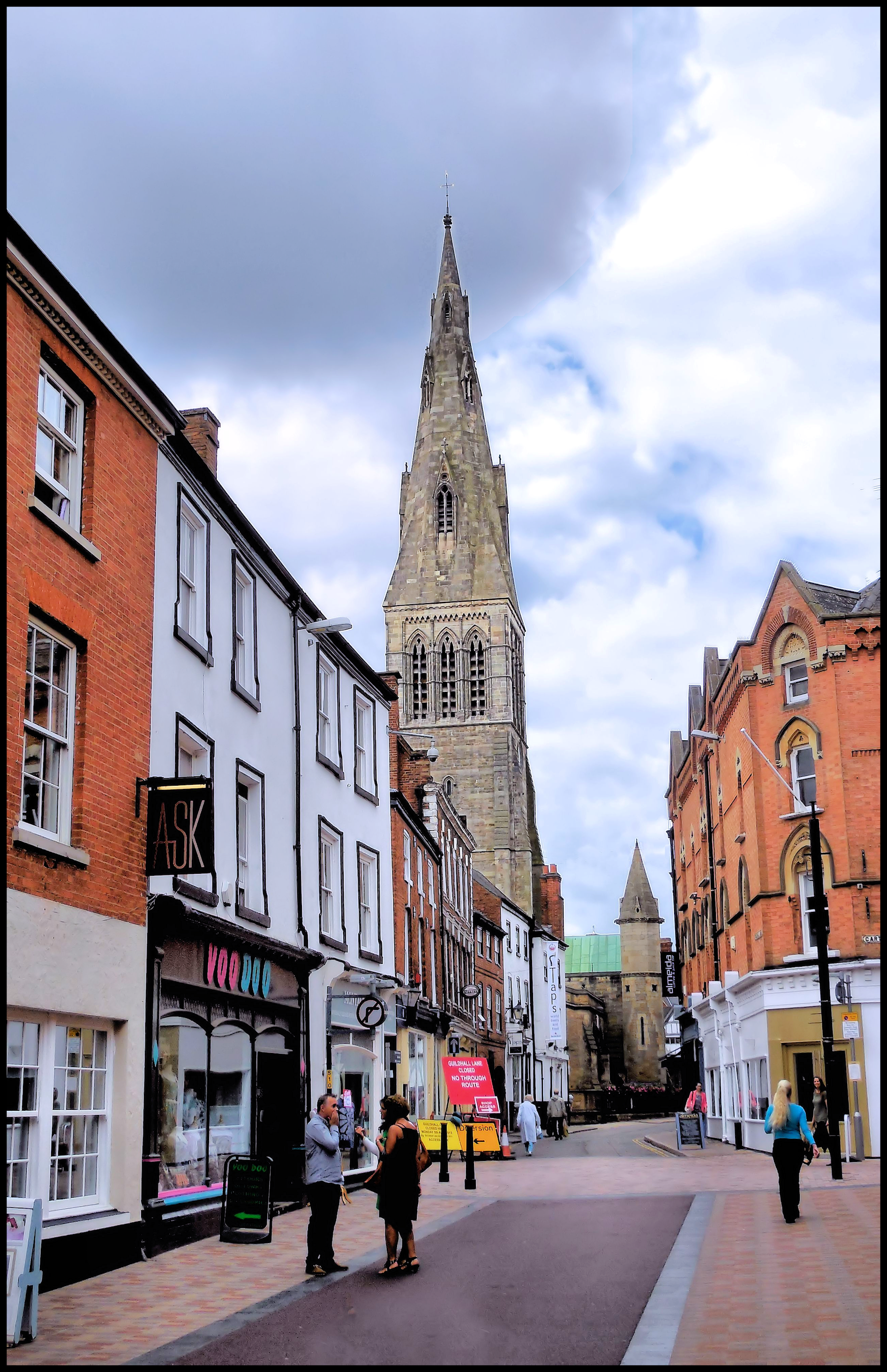 This is a scene as you walk from Leicester UK town center up Silver street towards the cathedral.