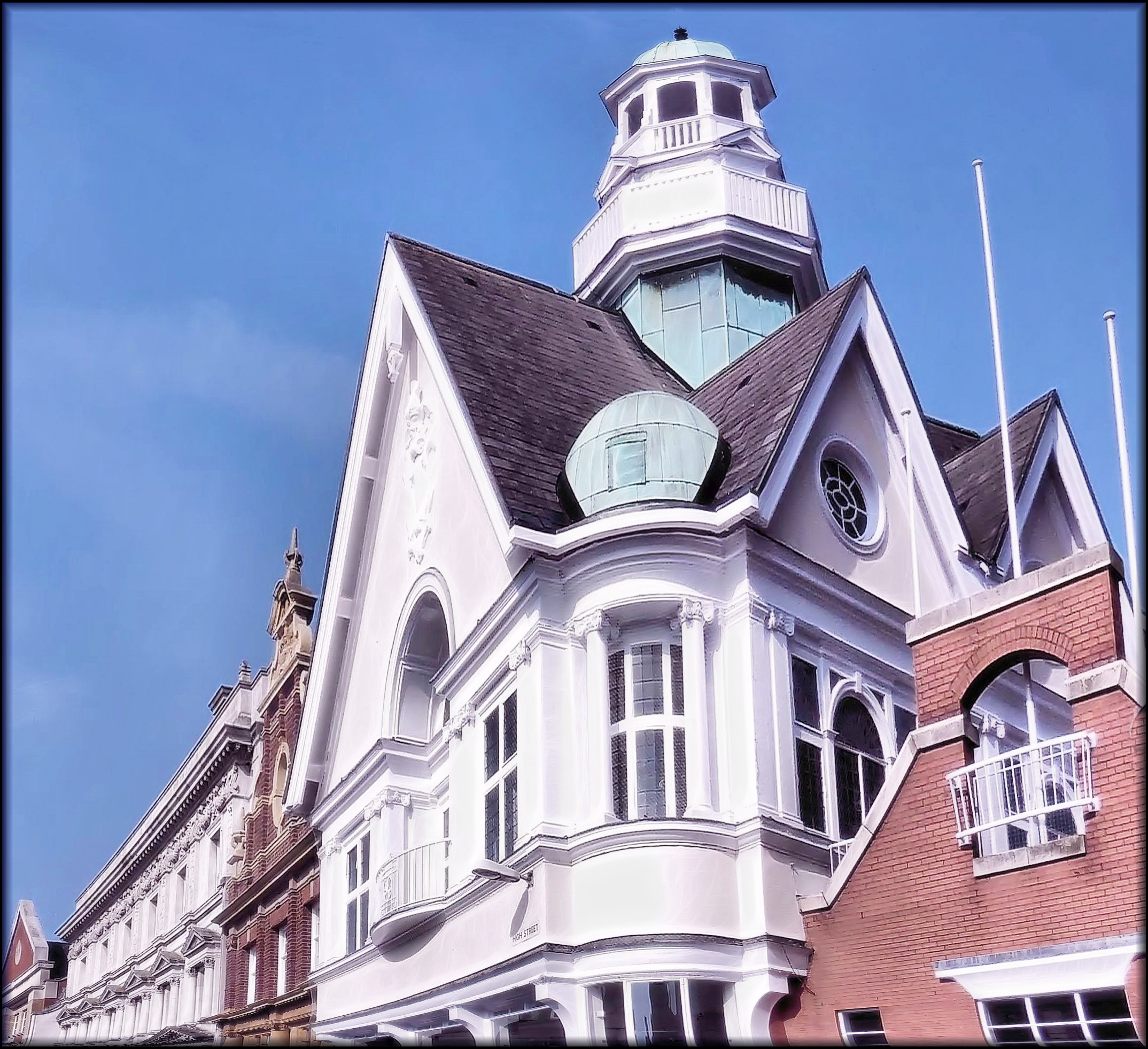 This is a photo of the Highcross Shopping Center Leicester UK.Below this scene is just large entrance doors and the city council lucky enough they kept all the main parts of the building.I believe many years ago it was come thing to do with chemistry with the cooper on the top of the roof that can be seen in green.