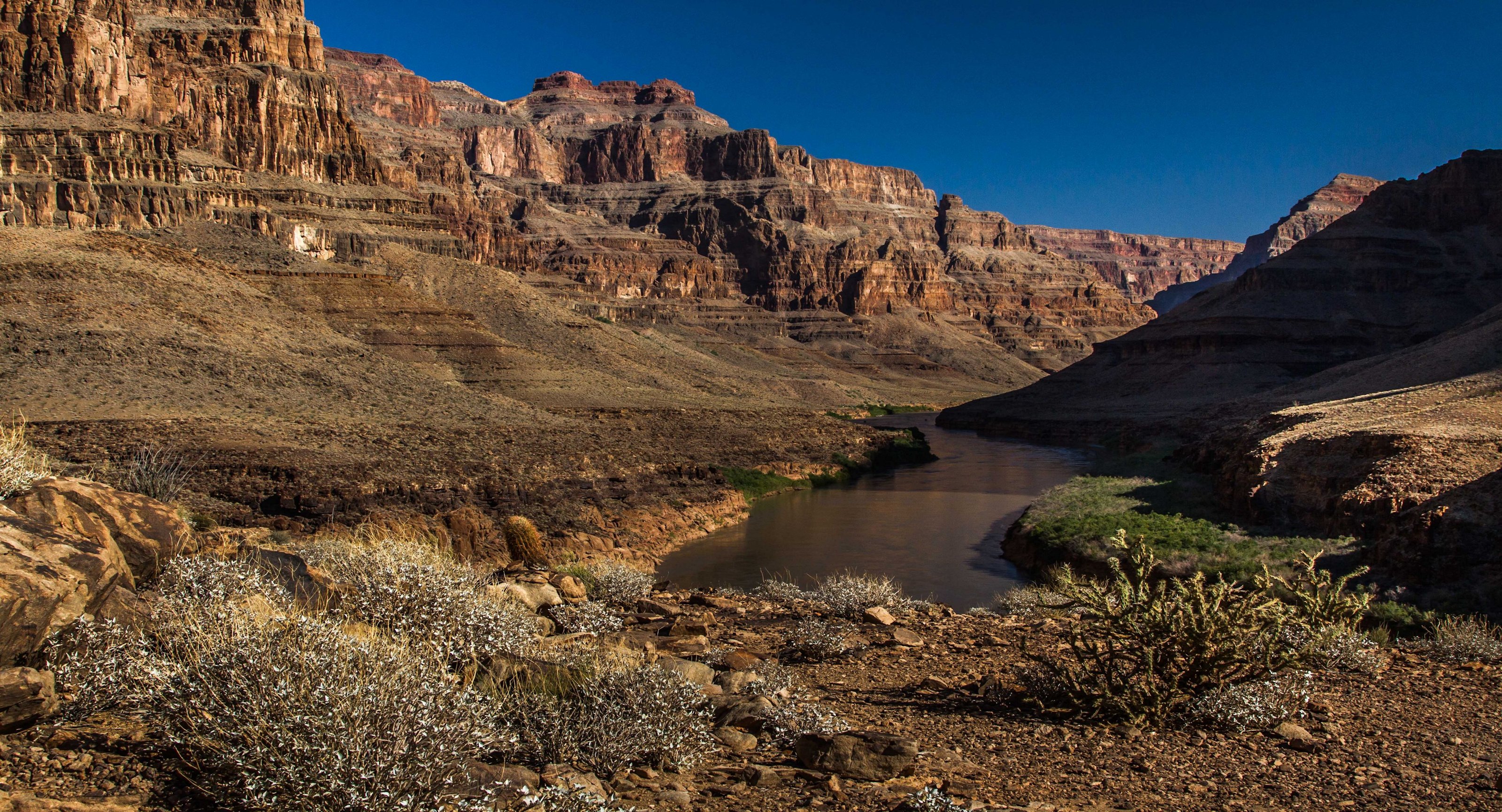 At the bottom of the Grand Canyon, with even a small piece of the Colorado River