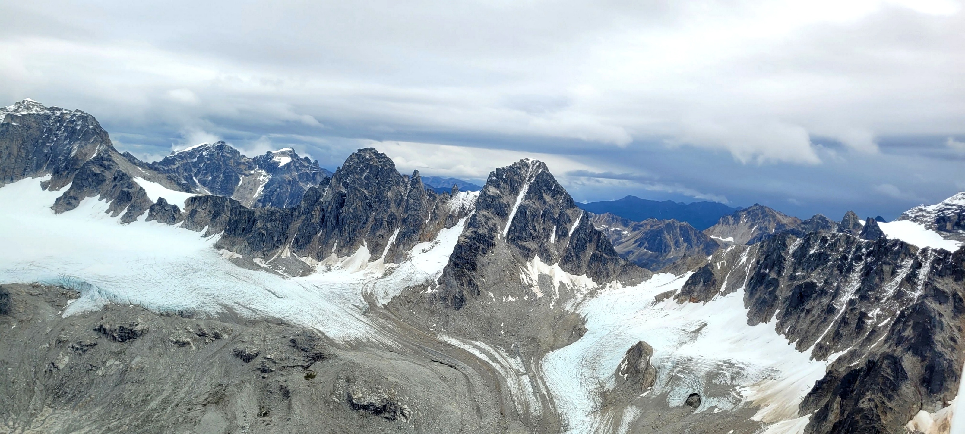 we had an amazing pilot, he was flying between these rocky peaks very smoothly and sometimes very close to them ...