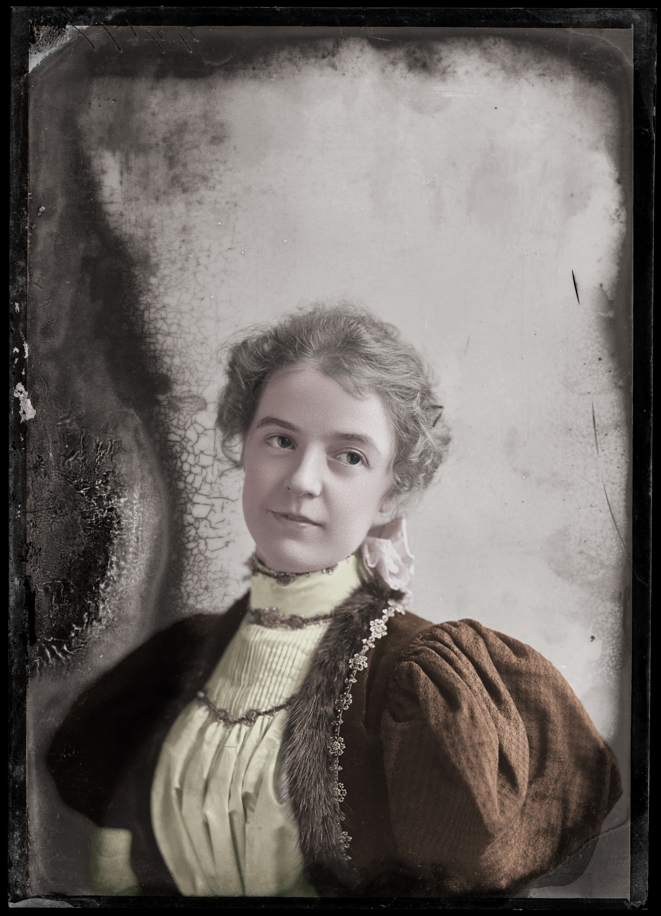 The Library of Congress Unidentified woman I claim no rights other than colorizing this image if you wish to use let me know Title [Unidentified woman] Contributor Names C.M. Bell (Firm : Washington, D.C.), photographer Created / Published [between 1873 and ca. 1916] Format Headings Glass negatives. Portrait photographs. Genre Portrait photographs Glass negatives Notes - Title devised by Library staff. - Date based on span of years of C.M. Bell Collection. - Negative number assigned by Library. - Gift; American Genetic Association, 1975. - General information about the C.M. Bell Collection is available at http://hdl.loc.gov/loc.pnp/pp.bellcm - Temp note: Batch 51. Medium 1 negative : glass ; 5 x 7 in. Call Number/Physical Location LC-B5- 800145 [P&P] Source Collection C.M. Bell Studio Collection (Library of Congress) Repository Library of Congress Prints and Photographs Division Washington, D.C. 20540 USA http://hdl.loc.gov/loc.pnp/pp.print Digital Id bellcm 23944 //hdl.loc.gov/loc.pnp/bellcm.23944 Library of Congress Control Number 2016711382 Reproduction Number LC-DIG-bellcm-23944 (digital file from original) Rights Advisory No known restrictions on publication. Online Format image Description 1 negative : glass ; 5 x 7 in.