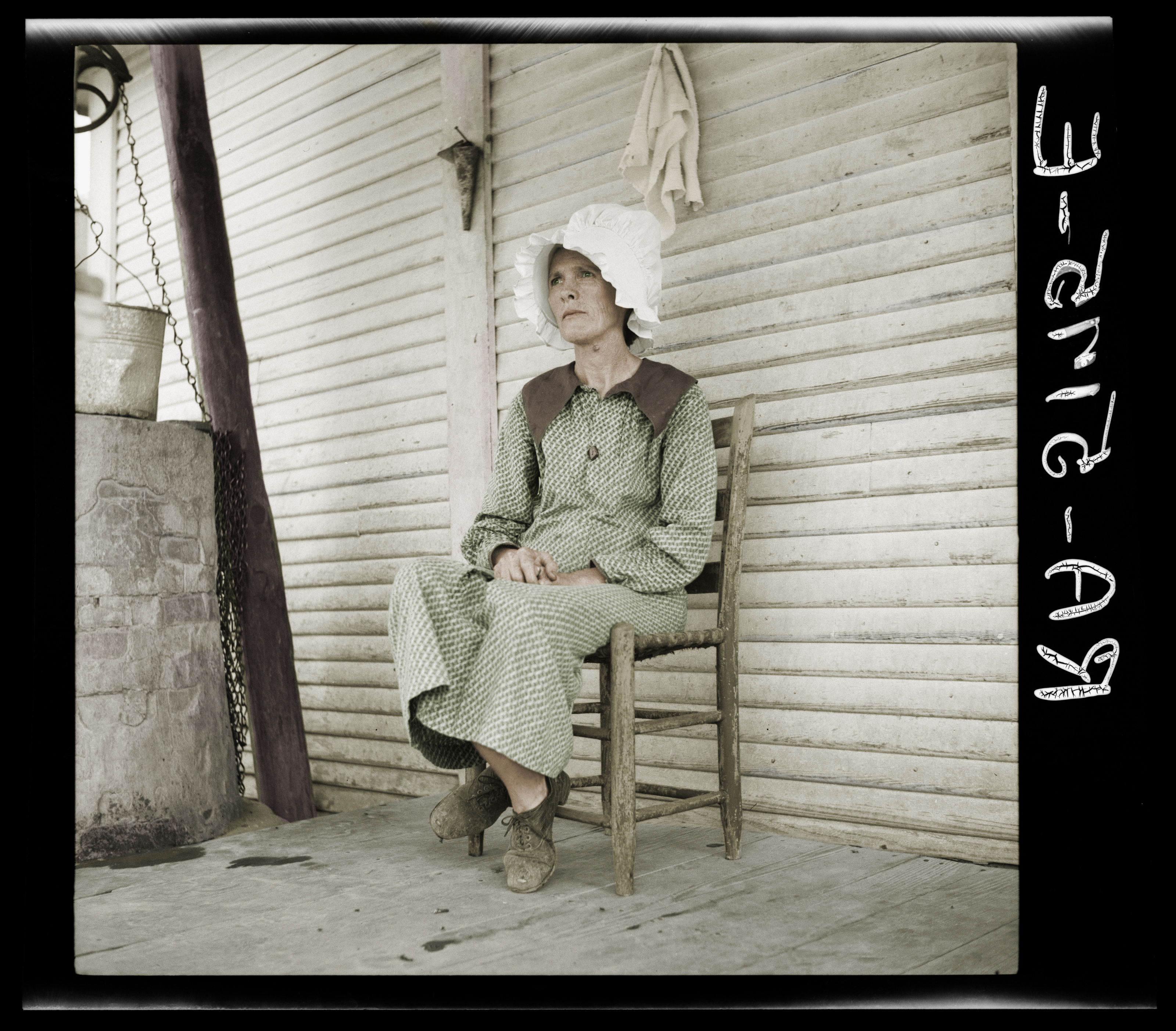 The Library Congress Rehabilitation client I claim no rights other than colorizing this image if you wish to use let me know and always give due credit to The Library of Congress I have no commercial gain in publishing this image. Title Rehabilitation client. Kaufman County, Texas Contributor Names Rothstein, Arthur, 1915-1985, photographer Created / Published 1936 July-Aug. Subject Headings - United States--Texas--Kaufman County - Rehabilitation--Texas Format Headings Nitrate negatives. Genre Nitrate negatives Notes - Title and other information from caption card. - Transfer; United States. Office of War Information. Overseas Picture Division. Washington Division; 1944. - More information about the FSA/OWI Collection is available at hdl.loc.gov/loc.pnp/pp.fsaowi - Temp. note: usf34batch1 Medium 1 negative : nitrate ; 2 1/4 x 2 1/4 inches or smaller. Call Number/Physical Location LC-USF34- 005175-E [P&P] LOT 543 (corresponding photographic print) Source Collection Farm Security Administration - Office of War Information Photograph Collection (Library of Congress) Repository Library of Congress Prints and Photographs Division Washington, D.C. 20540 USA hdl.loc.gov/loc.pnp/pp.print Digital Id fsa 8b28153 //hdl.loc.gov/loc.pnp/fsa.8b28153 Library of Congress Control Number 2017761001 Reproduction Number LC-USF34-005175-E (b&w film nitrate neg.) LC-DIG-fsa-8b28153 (digital file from original neg.) Rights Advisory No known restrictions. For information, see U.S. Farm Security Administration/Office of War Information Black & White Photographs www.loc.gov/rr/print/res/071_fsab.html Online Format image Description 1 negative : nitrate ; 2 1/4 x 2 1/4 inches or smaller. LCCN Permalink lccn.loc.gov/2017761001 Additional Metadata Formats MARCXML Record