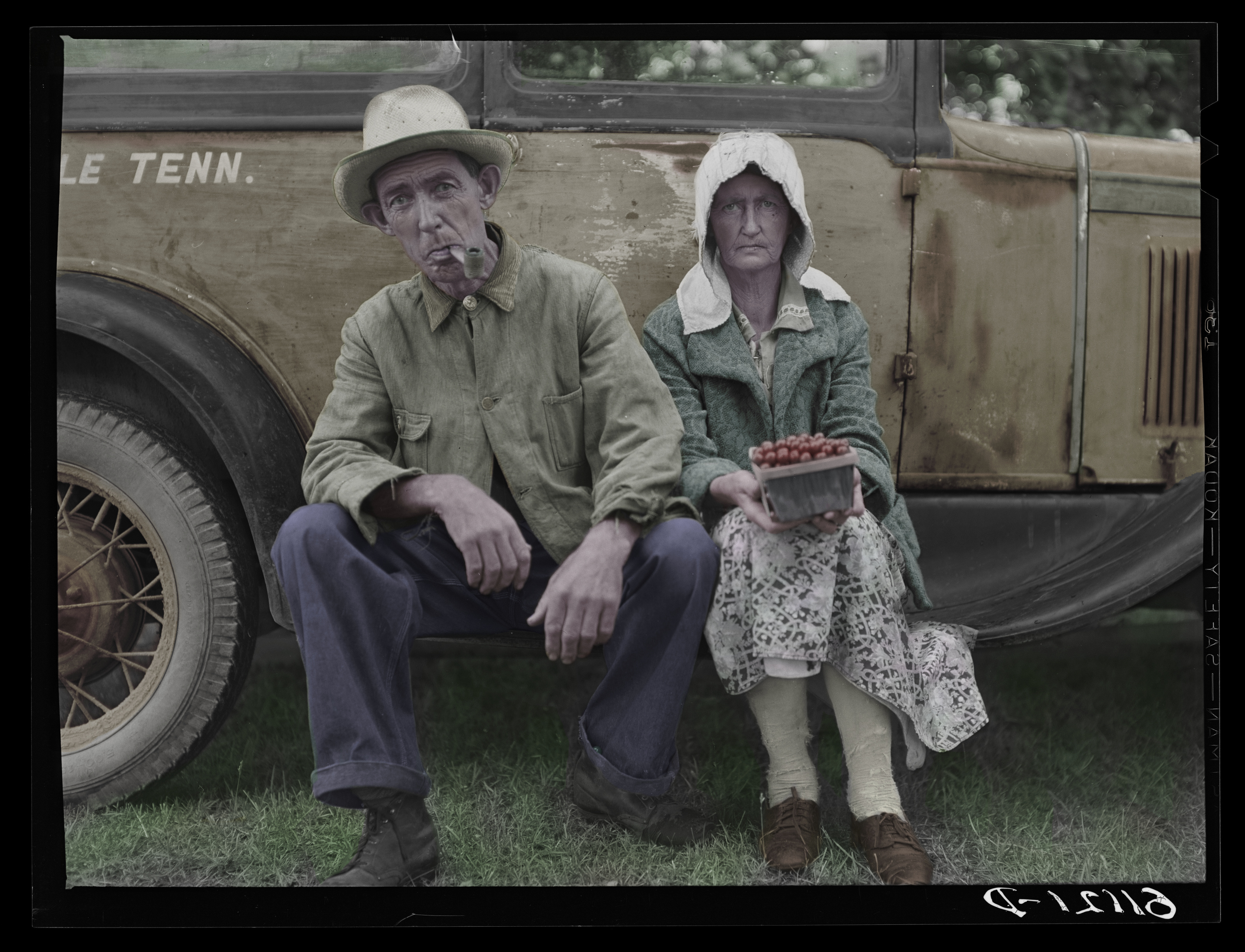 The Library of Congress Migrant fruit workers 1940 I claim no rights other than colorizing this image if you wish to use let me know and always give due credit to The Library of Congress I have no commercial gain in publishing this image. Migrant fruit workers. Berrien County, Michigan. The cherries were picked for their own use Contributor Names Vachon, John, 1914-1975, photographer Created / Published 1940 July. Subject Headings - United States--Michigan--Berrien County Headings Safety film negatives. Rights Advisory No known restrictions. For information, see U.S. Farm Security Administration/Office
