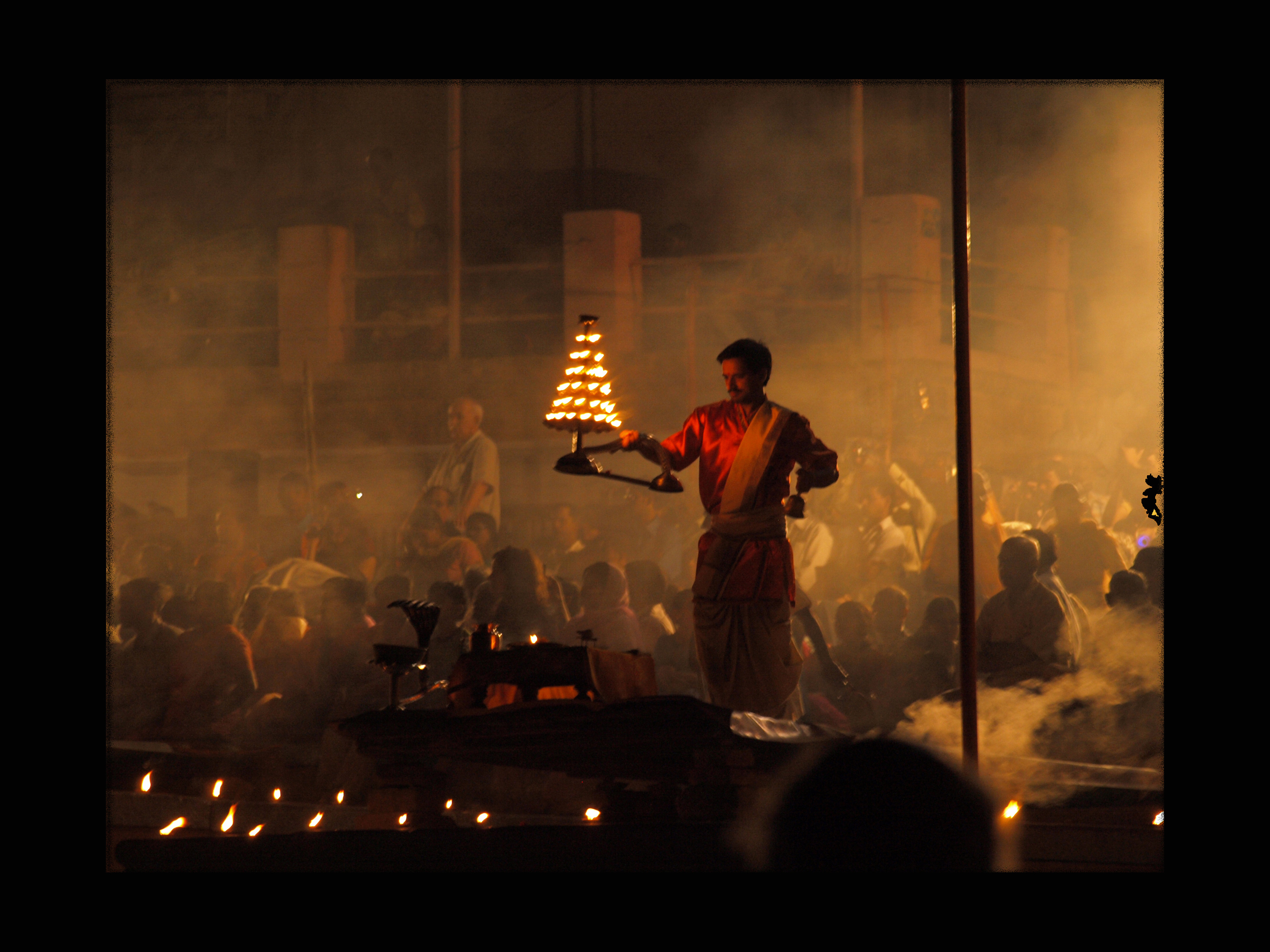 Continuing on with my series from Varanasi. This image was taken from a boat on the Ganges late at night during the Aarti ceremony where prayer worships light sound, light and air. I hope you like this shot, I felt it had atmosphere, but due to the lack of light, the distance and the boat.. the focus was the best I could do with my Olympus and telephoto.