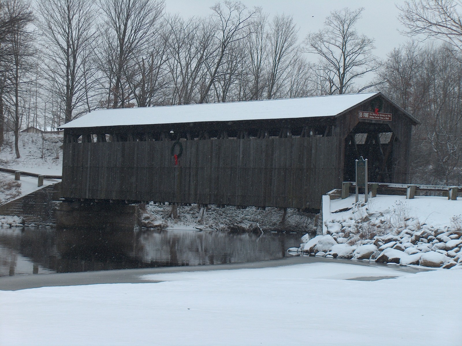 This is one of just a few covered bridges left in my area. As for the lighting it was a cold gloomy snowy morning.