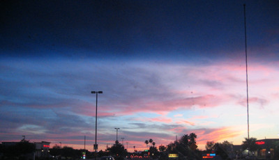 I was driving and couldn't resist the urge to take a picture of the gorgeous sunset. Appologies for the dirty windshield in the front and the city streets.