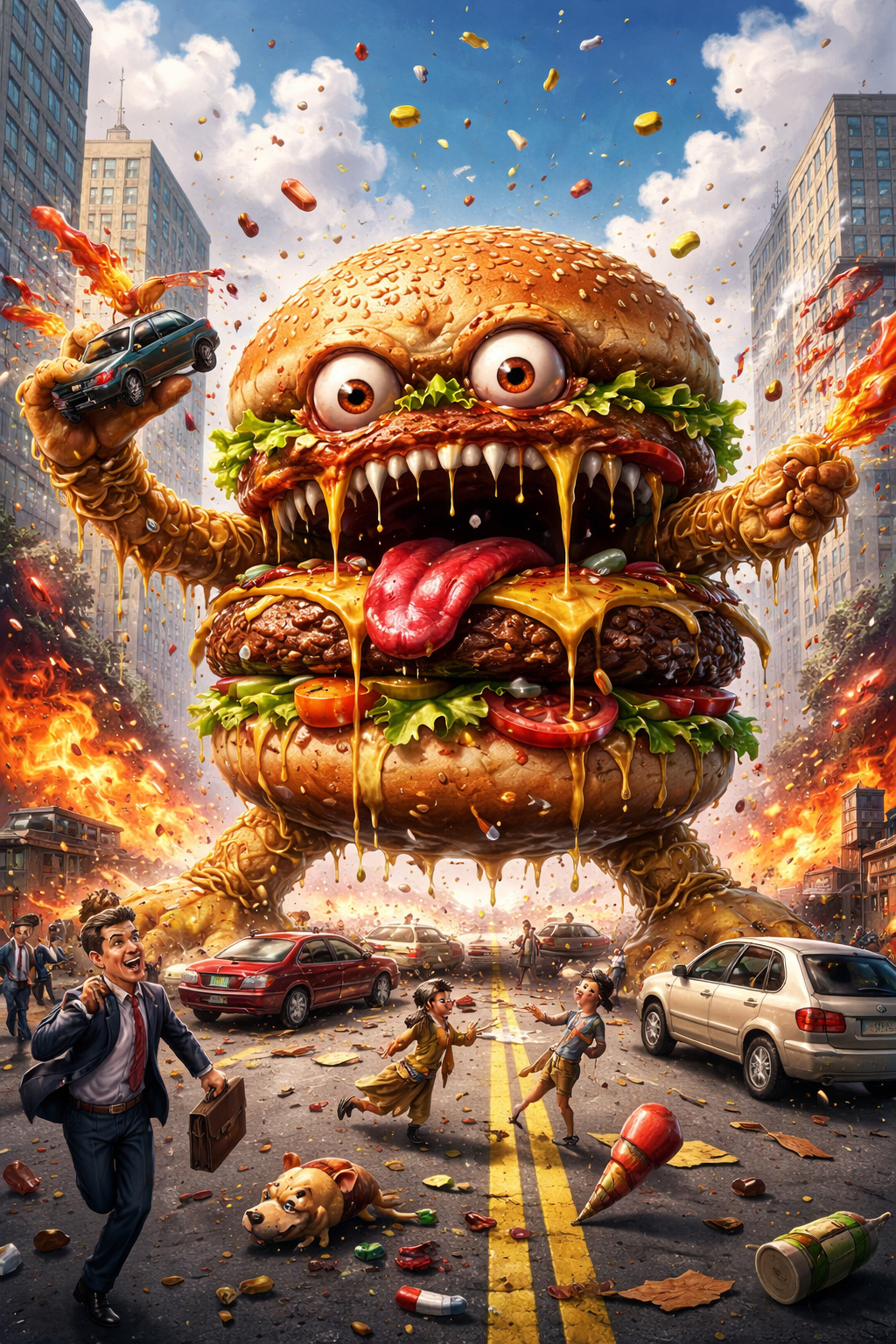 The burger attack! Created in CHAT GPT for wacky Wednesday. Thanks for commenting. tigs=^..^=
